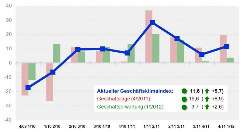 Mit einem Wert von 11,6 hat der Geschäftsklimaindex des Kunststoffrohrverbandes seinen Abwärtstrend aus den beiden Vorquartalen gestoppt und verzeichnet stattdessen einen Anstieg um 5,7 Punkte. Der Index für die Geschäftslage im 4. Quartal 2011 liegt mit einem Wert von 19,6 auf dem bisher zweithöchsten erhobenen Wert. Insbesondere die milde Witterung und die allgemein positive Nachfrage- und Auftragssituation machten sich positiv bei den Rohrherstellern bemerkbar. Rückgängige Marktdynamik erwartet Die Geschäftserwartung liegt ebenfalls im positiven Bereich, bewegt sich mit einem Wert von 3,7 allerdings deutlich Richtung Vorjahresniveau. Dies weist auf eine voraussichtlich rückgängige Marktdynamik im kommenden Quartal hin. Die Herstellkosten waren im 4. Quartal 2011 nach wie vor auf einem etwas höheren Niveau anzusiedeln als im entsprechenden Vorjahresquartal. Der Unterschied zum Vorjahr verringert sich aber zunehmend, teilt der KRV mit. Bzgl. der Ertragslage konnte der positive Trend der letzten Quartale in 4/2011 nicht fortgeführt werden. Auch seitens der Kunststoff erzeugenden Unternehmen wurde teilweise von einer starken Verschlechterung der Ertragssituation im Vergleich zum Vorjahr berichtet, was u.a. auf gestiegene Herstellkosten zurückzuführen ist (u.a. hohe Preisniveaus bei Rohstoffen und Vorprodukten). Ebenso wurde die Absatzsituation im 4. Quartal 2011 bereits deutlich unter Vorjahresniveau bewertet. Weitere Informationen: www.krv.de |