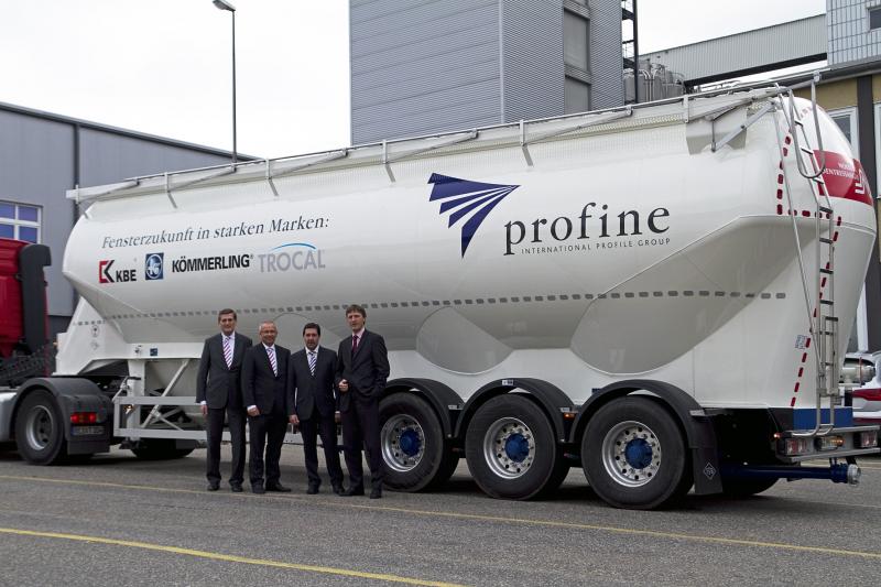 ![]() v.l.: Dr. Wolfram Prößdorf (Commercial Director Vinnolit), Hans-Joachim Fox (Vinnolit), Jürgen Dohr (Einkauf profine) und Gerhard Schwager (Geschäftsführer profine) bei der Ankunft des LKW nach der Jungfernfahrt in Pirmasens. „Die neuartige Bauweise des Aufliegers erhöht das Fassungsvermögen für Rohstoffe deutlich, weshalb bei gleichbleibendem Volumen weniger Anlieferungen benötigt werden. Dadurch leisten alle Beteiligten einen positiven Beitrag zur Reduzierung der Umweltbelastung durch den Straßenverkehr“, erläutert Gerhard Schwager, Mitglied der Geschäftsführung von profine. „Dies steht in Einklang mit unserer Maxime für Energieeffizienz und Nachhaltigkeit.“ Darüber hinaus sind auf den Seitenflächen des Silofahrzeugs der Spedition Dentressangle, auf jeweils einer Seite, sowohl die Logos der profine und ihrer Marken als auch der Vinnolit-Schriftzug zu sehen. „Durch den regelmäßigen Pendelverkehr des Fahrzeugs wird damit zusätzlich der Bekanntheitsgrad beider Unternehmen erhöht“, so Schwager. „Unsere Geschäftbeziehung mit profine besteht seit Gründung der Vinnolit vor 20 Jahren“, erläutert Dr. Wolfram Prößdorf, Commercial Director von Vinnolit. „Durch den Einsatz modernster Logistik zeigen wir die Verbundenheit mit unserem Schlüsselkunden profine und erhöhen unsere Servicequalität.“ Über profine Die profine GmbH - International Profile Group - gilt als ein führender Hersteller von Kunststoff-Profilen für Fenster und Türen sowie namhafter Anbieter von Sichtschutz-Systemen und PVC-Platten. Die Gruppe ist mit ihren Marken KBE, KÖMMERLING und TROCAL an 28 Standorten in 21 Ländern vertreten und damit international aufgestellt. profine produziert an Standorten in Deutschland, Frankreich, Italien, Spanien, Russland, der Ukraine, den USA und China. Die Unternehmensgruppe mit Sitz in Troisdorf, Nordrhein-Westfalen, erwirtschaftete im Geschäftsjahr 2011 mit 3.200 Mitarbeitern einen Umsatz von rund 700 Mio. Euro. Über Vinnolit Die 1993 gegründete Vinnolit GmbH & Co. KG gilt als einer der führenden PVC-Rohstoffhersteller in Europa und als ein weltweiter Markt- und Technologieführer bei PVC-Spezialitäten. Vinnolit produziert und vermarktet ein breit gefächertes PVC-Produktsortiment, das alle gängigen PVC-Anwendungen abdeckt, die z.B. im Bausektor, in der Automobilindustrie oder in der Medizintechnik zum Einsatz kommen. Weitere Informationen: www.profine-group.com, www.vinnolit.com |