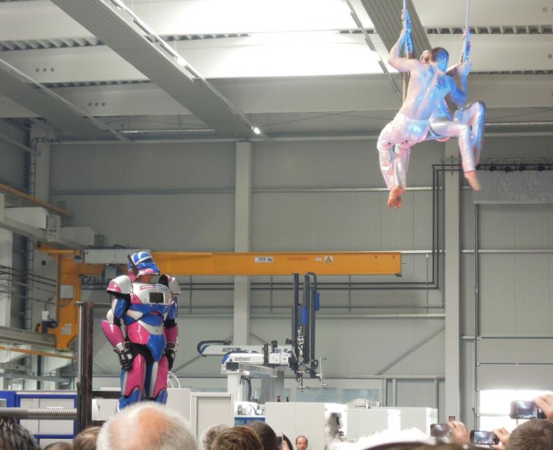 Für das Jahr 2012 meldet die Wittmann Gruppe einen Umsatz von 275 Mio. Euro, was gegenüber 2011 eine Steigerung um 10% bedeutet. Die Zahl der Beschäftigten wuchs im selben Zeitraum weltweit um 50 Mitarbeiter auf 1.750. Für das erste Quartal 2013 berichtete Georg Tinschert, Geschäftsführer der Wittmann Battenfeld GmbH, anlässlich der kürzlich veranstalteten Kompetenztage des Unternehmens (siehe auch plasticker-News vom 10.5.2013) von einem guten Start und einem Umsatz auf gleichem Niveau wie in den ersten drei Monaten des Vorjahres. Damit hat sich die Gruppe in einem schwächer werdenden konjunkturellen Umfeld gut behauptet, wobei keine nach den Bereichen Spritzgießmaschinen (Wittmann Battenfeld) und Peripherie (Wittmann Kunststoffgeräte) differenzierten Umsatzzahlen berichtet wurden. Zum Vergleich: Für die deutschen Hersteller von Kunststoff- und Gummimaschinen insgesamt berichtet der VDMA im Kernmaschinenbau von einem Umsatzwachstum von immerhin 6% in 2012 (siehe auch plastickerNews vom 12.02.2013). Gruppenumsatz konnte über alle Branchen und Regionen insgesamt zulegen Die konjunkturelle Abkühlung ist in manchen Regionen auch an Wittmann nicht spurlos vorbei gegangen. In Europa (Gesamtanteil 57%) konnte die Schwäche in Westeuropa aber durch eine lebhafte Nachfrage aus Osteuropa teilweise ausgeglichen werden. Und während sich die Geschäfte auch in Asien (14%) verhalten entwickelten, zog in Amerika (28%), insbesondere in Nordamerika mit Mexiko, mit der Konjunktur auch der Absatz von Maschinen der Wittmann Gruppe wieder an. Somit konnte die Gruppe durch die verstärkte globale Aufstellung die Rückgänge in einigen Teilen der Welt insgesamt überkompensieren. ![]() Georg Tinschert (l.) und Michael Wittmann: Gute Laune bei der Vorstellung guter Zahlen und großer Investitionen - (alle Bilder: plasticker). Die wichtigsten Abnehmerbranchen, für welche die Maschinen von Wittmann produzieren, sind die Automobilindustrie mit einem Anteil von 35% und die E&E-Branche mit 21%. Berücksichtigt man, dass ein großer Teil dieser Elektro- bzw. Elektronikbaugruppen wiederum im Auto zum Einsatz kommen, so entfallen über 50% des Gruppenumsatzes auf den Automotivebereich. Weitere wichtige Absatzmärkte sind Verpackung (13%), Konsumwaren und Weiße Ware (12%), Medizintechnik (10%) sowie Sport- und Freizeitartikel inklusive Spielzeug (9%); letzterer Bereich habe in den letzten Jahren besonders stark zugelegt, berichtete Michael Wittmann, Geschäftsführer der Gruppe. Zuversichtlich für 2013 und für die K Messe Für das laufende Jahr äußerten sich Tinschert und Wittmann vorsichtig optimistisch. Nach einem Auftragseingang im ersten Quartal auf Vorjahresniveau erwartet man für die Gruppe im Gesamtjahr 2013 ein leichtes Wachstum auf 280 bis 290 Mio. Euro. Dass man in Kottingbrunn und Wien mit weniger Wachstum als in den Vorjahren rechnet, liegt an der weiteren konjunkturellen Abschwächung in weiten Teilen Europas. Dass überhaupt noch von einer Steigerung ausgegangen wird, liegt zum einen an einem hohen Auftragsbestand aus dem Vorjahr, den man in 2013 noch abarbeite, zum anderen setzt man auf Wachstumsimpulse aus dem Großmaschinengeschäft, für dessen weiteren Ausbau man mit dem Bau der neuen Montagehalle in Kottingbrunn gerade die Voraussetzungen geschaffen hat (siehe auch plasticker-News vom 10.05.2013). Ausbau der Großmaschinen Serie MacroPower Vor zweieinhalb Jahren markierte die Vorstellung der ersten MacroPower-Maschinen mit bis zu 1.000 Tonnen Schließkraft bei der K 2010 den Wiedereinstieg in das Geschäft mit Großmaschinen. Seither wurde die MacroPower Serie nach unten und oben erweitert, aktuell bietet Wittmann Battenfeld die Maschinen dieser Serie von 400 Tonnen bis 1.600 Tonnen Schließkraft an. Letztere Großmaschine sei fertig entwickelt und soll erstmals bei der K 2013 gezeigt werden. Bei den Kompetenztagen Ende April wurde die neue MacroPower E Hybrid vorgestellt, bei der eine servohydraulische Schließeinheit mit einem vollelektrischen Hochleistungs-Spritzaggregat kombiniert wurde. Insgesamt habe man seit 2010 bereits knapp 150 Maschinen der MacroPower Serie gebaut. Auch für die anderen Maschinenserien, z.B. die vollelektrische EcoPower und die MicroPower für Klein- und Kleinstteile, gebe es rege Nachfrage. Insbesondere bei Mehrkomponentenmaschinen sei man zuletzt recht erfolgreich gewesen und wolle in diesem Segment weiter wachsen, so das Unternehmen. Insgesamt sieht man in diesem Teilmarkt in Europa ein Potenzial von rund 700 Maschinen pro Jahr. Investitionen in allen Bereich an mehreren Standorten Um künftig nicht nur noch mehr Großmaschinen bauen zu können, wurden am Standort Kottingbrunn seit 2011 nach Unternehmensangaben rund 14 Mio. Euro investiert, die überwiegend in die Erweiterung der Montage- und Lagerfläche um 3.000 qm sowie in neue Bearbeitungszentren flossen. Beides schafft dort auch Platz für weitere Produktionsanlagen für kleinere Maschinen. Zusätzlich ist geplant, die Produktion der elektrischen Maschinen der EcoPower Serie an den bestehenden Standort Mosonmagyaróvár in Nordwestungarn zu verlagern, der nur jeweils etwa eine Autostunde von Kottingbrunn und Wien entfernt liegt. ![]() Hoch hinaus will man in Kottingbrunn mit der neuen Großmaschinenhalle. Passend dazu - hoch über den Köpfen - die Artistenshow zur Eröffnungsfeier. Ausbau auch in Wien, Nürnberg und Taichung Bereits im Februar wurde am Stammsitz von Wittmann Kunststoffgeräte in Wien ein drittes Werk in Betrieb genommen. Der neue Standort liegt in unmittelbarer Nachbarschaft der beiden bestehenden Standorte im selben Gewerbegebiet und erweitert den Bereich der Blechverarbeitung für die Peripheriegeräte um rund 1.500 qm (s. plasticker vom 25.04.2013). Ebenfalls bereits Anfang des Jahres konnte die deutsche Wittmann Robottechnik von Schwaig ins benachbarte Nürnberg umziehen. Der neue Standort im Gewerbepark Nürnberg-Feucht-Wendelstein bietet auf 3.000 qm Produktionsfläche
