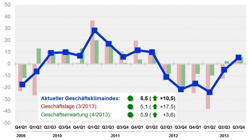 Nachdem der Geschäftsklimaindex im 1. Quartal 2013 seinen bisherigen Tiefpunkt erreichte und sich im 2. Quartal spürbar erholte, verbessert sich dieser im 3. Quartal um weitere 10,5 Punkte auf einen Wert von 5,5. Ursächlich ist dabei laut KRV insbesondere die Verbesserung der Geschäftslage, deren Index im 3. Quartal 2013 um mehr als 17 Punkte auf einen Wert von 5,1 gestiegen ist. Am stärksten seien die Zuwächse bei den Industrierohren und der Haustechnik ausgefallen, deren Absatzniveau im 3. Quartal im Vergleich zu der Ver- und Entsorgung deutlicher über Vorjahresniveau liegen. Die Bereiche Industrie und Haustechnik profitieren von allgemein verbesserten Marktvoraussetzungen und einer seitens der Rohrhersteller wahrgenommenen Marktbelebung. Die Geschäftserwartungen deuten für das 4. Quartal 2013 eine voraussichtliche Überschreitung des Absatzniveaus des Vorjahres an. Dies äußert sich im Index der Geschäftserwartungen von 5,9, der in etwa dem Niveau der aktuellen Geschäftslage entspricht. Die Bereiche und Industrierohre schneiden auch hier etwas besser ab, als die Anwendungsbereiche der Ver- und Entsorgung. Aber auch in diesen Bereichen rechne die Mehrheit der Unternehmen aufgrund hoher Anfragetätigkeiten für das 4. Quartal 2013 mit Absatzzahlen über den des Vorjahres. Dennoch bewegt sich die Ertragslage mit einem Index von -17,6 weiterhin im "negativen" Bereich. Ursächlich seien im Vergleich zum Vorjahresquartal gestiegene Energie- und Personalkosten, die sich in Verbindung mit Überkapazitäten und einer hohen Wettbewerbsintensität bei den sogenannten Commodities negativ auf die Verkaufs- bzw. Marktpreise und somit auf die erzielenden Margen der Unternehmen auswirken. Der KRV-Geschäftsklimaindex wird seit Ende 2008 vom Kunststoffrohrverband erhoben. Im Auftrag des KRV ermittelt das Beratungsunternehmen Consultic GmbH vierteljährlich einen aktuellen, belastbaren und regelmäßigen Indikator über die Entwicklung und Erwartung der Geschäfte. Teilnehmen können alle Hersteller von Kunststoffrohren und Formstücken bzw. (im Bereich Haustechnik) Kunststoffrohr-Systemanbieter zum Preis von € 950,00 p.a. Darin enthalten sind vier Quartalserhebungen mit jeweiliger Detailauswertung und Bericht. Weitere Informationen: www.krv.de |