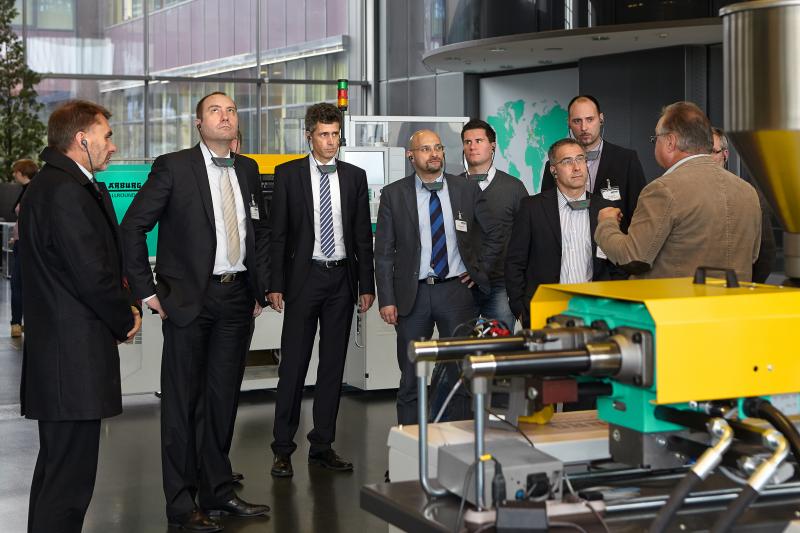 ![]() Bei einem Rundgang durch den Betrieb informieren sich die Gäste vom Kunststoff-Netzwerk Franken e.V. zu Automationslösungen von Arburg - (Bild: Arburg). Die Automationsexperten des Kunststoff-Netzwerks Franken treffen sich mehrmals jährlich, um aktuelle Themen zu diskutieren. Dem Kreis gehören namhafte Kunden, Roboter-Hersteller, Automatisierer und Maschinenbauer an. Experten diskutieren über Automation „Die Einbindung von Robot-Systemen und Peripheriegeräten in die Steuerung ist ein wichtiges Thema, um die Spritzteileproduktion noch effizienter zu machen“, erläutert Oliver Giesen. Die Teilnehmer erfuhren, wie Arburg die Bedienoberfläche der Selogica-Maschinensteuerung auf die eines Sechs-Achs-Roboters übertragen hat und welche Vorteile dies gegenüber einer klassischen Euromap-67-Schnittstelle bietet. Die meisten Teilnehmer waren überrascht, dass das schwäbische Familienunternehmen so viele Entwickler im Software-Bereich beschäftigt. Bei einem abschließenden Betriebsrundgang konnten sie die Montage von Robot-Systemen und Turnkey-Anlagen selbst in Augenschein nehmen. „Das war ein sehr gelungener Erfahrungsaustausch“, lautete das Fazit von Oliver Giesen. Weitere Informationen: www.arburg.com, www.kunststoff-netzwerk-franken.de |