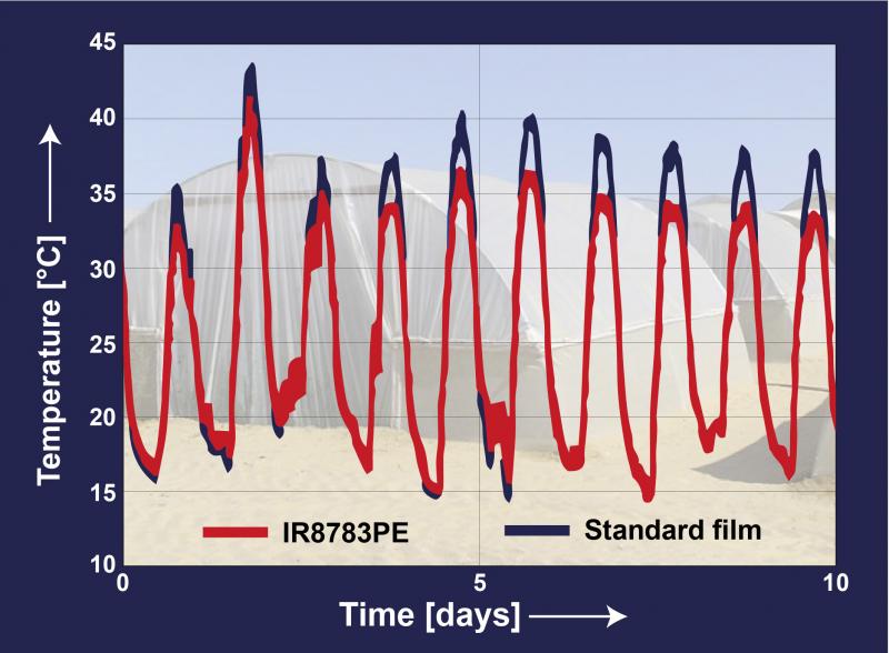 IR8783PE ist das neue Cooling Masterbatch von Tosaf für Gewächshausfolien. Damit hergestellte Folien unterstützen laut Anbieter ein optimales Pflanzenwachstum, indem sie einen erheblichen Anteil der nahen Infrarotstrahlung (NIR) blockieren, die andernfalls das Innere des Gewächshauses stark aufheizen würde. Der Großteil der photosynthetisch aktiven Strahlung (PAR, engl. photosynthetically active radition), die für ein gesundes Pflanzenwachstum benötigt wird, kann demzufolge die Folie ungehindert passieren. Bei Feldversuchen in Südisrael konnte den weiteren Angaben zufolge eine 4 bis 5°C niedrigere Spitzentemperatur im Vergleich zu den gebräuchlichen Folien mit Lichtdiffusor erreicht werden, ohne dass die Temperatur über Nacht unerwünscht tief fiel. Empfohlen wird ein Zusatz von 5 Prozent für eine 200 µm dicke Folie. Das Masterbatch eignet sich für ein-, zwei oder dreilagige Folien. Der Anbau von Kulturpflanzen in sehr heißen Regionen, wie den Subtropen oder Südeuropa, gilt als schwierig, da die Fähigkeit der Pflanzen zur Pollenproduktion bei hohen Temperaturen beeinträchtigt ist. Die gebräuchlichste Maßnahme, das Weißeln der Folien, benötigt einen zusätzlichen Arbeitsschritt, und zudem wird durch ein Teil der wichtigen PAR blockiert. Durch IR8783PE in den Folien kann nicht nur dieser zusätzliche Arbeitsschritt gespart werden, sondern auch die Temperatur ohne großen PAR-Verlust gesenkt werden. Über Tosaf Die Tosaf Gruppe ist ein 1985 gegründetes Jointventure der Megides Holding und der Ravago Gruppe. Die Gruppe beschäftigt an neun Produktionsstätten in Israel, der Türkei, in Deutschland, Großbritannien, den Niederlanden und der Ukraine insgesamt 800 Mitarbeiter. Das Produktprogramm von Tosaf umfasst mineralgefüllte Compounds für die Haushaltsgeräte-, die Automobil- und andere Kunststoff verarbeitende Industrien, Additive wie UV- und Lichtstabilisatoren, Flammschutzmittel und kundenspezifische Additive für Anwendungen wie BOPP, Landwirtschafts-, Verpackungs- und Industriefolien, Polycarbonatplatten, Rohre, Schäume und andere Produkte sowie Farbmasterbatche für eine breite Anwendungsvielfalt. Weitere Informationen: www.tosaf.com |