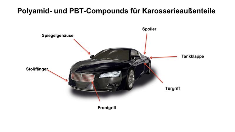 ![]() Lanxess sieht in der Fertigung von Karosserieaußenteilen großes Potenzial für PBT- und Polyamid-Compounds – so etwa bei Stoßfängern, Schwellern, Frontgrills, Türgriffen, Tankklappen, Spoilern und Spiegelgehäusen. [Foto: LANXESS AG] Neues PBT für Tankklappen - KTL-fähig und dimensionsstabil Beispiel einer Materialinnovation für Tankklappen ist laut Lanxess das mit 20 Prozent Glaskugeln verstärkte Pocan B 5220 XF. Es sei eine Alternative zu Blends aus Polyphenylenethern und Polyamid (PPE+PA), die häufig in der Serienproduktion von Tankklappen eingesetzt werden, weil sie online lackierbar sind. Nachteil solcher Blends ist jedoch die hohe Wasseraufnahme, die sich negativ auf die geforderte Maßhaltigkeit auswirken könne. PBT hingegen zeichne sich durch eine hohe Dimensionsstabilität aus. "Unser Pocan B 5220 XF hält zudem den gängigen Temperaturen der kathodischen Tauchlackierung (KTL) stand. Das Bauteil kann daher an der Karosserie montiert werden und mit ihr die Online-Lackierung samt KTL-Prozess durchlaufen, was Kosteneinsparungen etwa in puncto Logistik und Lackieraufwand erschließt", so Krause. Dagegen seien mineralgefüllte PBT- oder PA-Compounds, aus denen ebenfalls Tankklappen hergestellt werden, nicht KTL-fähig. Lanxess hat das thermische Verformungsverhalten des neuen Werkstoffs mit Hilfe von Tankklappen, die auf einem Serienwerkzeug gefertigt wurden, intensiv untersucht. "Selbst nach einer Stunde bei 200° C war die Verformung der frei aufgehängten Bauteile vernachlässigbar gering", so Krause. Eine weitere Stärke des neuen PBT sei die gute Oberflächenqualität und Lackierbarkeit. Sie beruhe darauf, dass das Material keine Glasfasern enthalte. Gegenüber vergleichbaren glaskugelverstärkten Standardmaterialien sei die deutlich verbesserte Schmelzefließfähigkeit und die um ca. 50 Prozent gesteigerte Zähigkeit hervorzuheben. Neues (PC+PBT)-Blend für Kühlergrills Speziell für Kühlergrills hat Lanxess Pocan TP 406-001 entwickelt. "Der unverstärkte Polycarbonat + PBT-Blendwerkstoff ist vor allem für Bauteile mit Class A-Oberflächen konzipiert, die mit einer Hochglanzlackierung versehen werden", so Krause. Das Material zeige eine sehr geringe und gleichmäßige Schwindung und neige kaum zum Verzug. Dank der auch bei Kälte hohen Zähigkeit des Blends splittere der Kühlergrill im Falle eines Crashs nicht, was dem Fußgängerschutz zugute kommen soll. Die hohe Wärmeformbeständigkeit sorge zudem dafür, dass lange, horizontale Gitterlamellen nicht durchhängen, wenn sie sich durch die Abwärme des Kühlers erhitzen. Die Produktpalette von Lanxess umfasst weiterhin u. a. unverstärkte (PBT+PC)- und (PET+PC)- sowie verstärkte (PBT+PET)-Blends für Karosserieaußenteile, die nicht online lackiert werden. Für Spoiler sei beispielsweise Pocan TP 957-001 geeignet, das bis zu 25 Prozent Post Consumer-Rezyklat aus PET-Flaschen enthält. Das mineralverstärkte (PET+PC)-Blend ist u. a. besonders schlagzäh und verzugsarm. Für Unterkonstruktionen von Spoilern, aber auch für Außenspiegelgehäuse und Türgriffe biete sich das wärmestabilisierte und leichtfließende Polyamid 6 Durethan DP 2131/20 W1 EF an. Es bringe für nicht lackierte Karosserieaußenteile eine sehr gute Witterungsbeständigkeit mit. Weitere Informationen: lanxess.com |