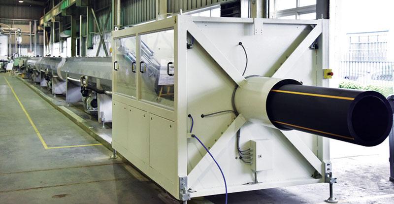 Während der diesjährigen Chinaplas, organisierte battenfeld-cincinnati China zwei Vorführungen, bei denen das Unternehmen zwei Linien in Produktion präsentierte: eine Hochleistungslinie (1.200 kg/h) für die Extrusion von Gasrohren mit 400 mm Durchmesser und eine LeanEX High-Speed-Linie für 20 mm PE-RT-Rohre, die mit einer Geschwindigkeit von 40 m/min lief. 210 Besucher kamen zur Vorführung der Extrusionslinien im Werk in Shunde. Toni Bernards, CEO von battenfeld-cincinnati China, erklärt: "Der Messeauftritt und das Open House waren ein voller Erfolg. Wir haben festgestellt, dass der chinesische Markt beides braucht - leistungsstarke Lösungen für High-End-Anwendungen und einfache, schlüsselfertige Linien für Standardprodukte, die leicht zu bedienen und schnell verfügbar sind. Wir konnten unseren Kunden an unserem Messestand und bei der Vorführung in unserem Werk zeigen, dass wir beides beherrschen und in der Lage sind, maßgeschneiderte Lösungen für jedes Unternehmen zu liefern." ![]() Auf der solEX Hochleistungslinie mit Ausstößen von 1.200 kg/h wurde ein 400 mm Gasrohr mit einem helix 400 VSI-T Rohrkopf mit Rohrinnenkühlung pro-duziert. Die Innenkühlung im Rohrkopf soll zudem eine deutliche Verkürzung der Linienlänge um 45 % von 85 m auf 47 m ermöglichen. Das PE-Material BorSafe 3490LS wurde von Borouge zur Verfügung gestellt und das Entfeuchtungs- und Fördersystem kam von Piovan. Dieses Energierückgewinnungssystem wurde zum Vortemperieren des Materials genutzt, wodurch den Angaben zufolge eine Energieersparnis von 30% erzielt werden konnte und der Gesamtenergieverbrauch der Linie pro Tonne verarbeitetem PE auf nur 268 kWh gesenkt worden sei. Die 400 mm PE-RT-Linie wurde vor dem Open House an die Hebei BlucicinPlastik Industry Co. Ltd. in Guan in der Provinz Hebei verkauft. Das chinesische Unternehmen produziert PVC Rohre, PP-R Rohre, PE Rohre und PB/PBOB Rohre und kaufte auch die erste Linie für 32 mm PBOB Rohre, die 2013 von battenfeld-cincinnati China hergestellt wurde. Die zweite Linie, die präsentiert wurde, war eine LeanEX Linie, die in fünf Größen erhältlich ist: 63, 160, 250, 400 und 630 mm. Das LeanEX Konzept steht für "schlanke Extrusion”, d.h. einfache, schlüsselfertige Linien für Standard-PO-Rohranwendungen, die mit europäischer Technologie und Schnecken, Zylindern, Motoren und Antrieben aus regionaler Produktion gebaut werden. Die vorgeführte Linie war eine LeanEX 63 mm Linie mit einem LeanEX C1-60-30 Einschneckenextruder, die PE-RT Rohre mit den Maßen 20 x 2,3 mm bei einer hohen Liniengeschwindigkeit von 40 m/min und einer Ausstoßleistung von 320 kg/h produzierte. Das HDPE XSene XRT 70 / PE-RT Typ II Material für diese Linie wurde von Total Refining & Chemicals bereitgestellt. Weitere Informationen: www.battenfeld-cincinnati.com/china |