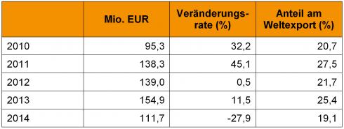 Zur Plastimagen 2016, die vom 08. bis 11. März 2016 in Mexiko City stattfindet, veröffentlicht der VDMA - Kunststoff- und Gummimaschinen aktuelles Zahlenmaterial zu den deutschen und internationalen Exportlieferungen von Kunststoff- und Gummimaschinen. Deutsche Lieferungen von Kunststoff- und Gummimaschinen nach Mexiko Die deutschen Exportlieferungen nach Mexiko von Januar bis Oktober 2015 belaufen sich auf 125,7 Mio. Euro, das ist ein Plus von 36,7 Prozent gegenüber demselben Vorjahreszeitraum. Top 10 Lieferländer von Kunststoff- und Gummimaschinen nach Mexiko Weltmaschinenlieferungen nach Mexiko 2014* (Wert: 584 Mio. Euro) *Zahlen für 2015 stehen noch nicht zu Verfügung Quellen: VDMA Statistikdatenbank, Außenhandelsdaten aus 52 Berichtsländern Die weltweiten Exportlieferungen von Kunststoff- und Gummimaschinen nach Mexiko erreichten 2014 ein Gesamtvolumen von 584 Mio. Euro und lagen um 7 Prozemt unter denen des Vorjahres. Deutschland lag mit einem Anteil von 19,1 Prozent am Gesamtexport auf Platz 2 hinter den USA (28,9 Prozent) gefolgt von Italien (10,2 Prozent) und China (9,4 Prozent). Deutsche Gemeinschaftsbeteiligung zur Plastimagen 2016: 19 Aussteller auf 261 qm. Weitere Informationen: www.vdma.org/plastics, www.plastimagen.com.mx Plastimagen 2016, 08.-11. März 2016, Mexiko City, Mexiko |