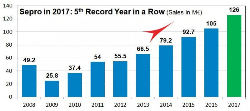 Zum fünften Mal in Folge hat die Sepro Group (La Roche sur Yon, Frankreich), ein weltweit führender Hersteller von Robotern für Kunststoffspritzgießmaschinen, neue Rekorde beim Roboterumsatz aufgestellt. Wie das Unternehmen weiter mitteilt, stattete Sepro im Jahr 2017 mehr als 3.200 Spritzgießmaschinen mit Robotern aus, was einer Steigerung von 20 Prozent entspricht und den Umsatz gegenüber dem Vorjahr um 21 Prozent auf den Rekordwert von 126,2 Mio. Euro steigerte. Sepros Erfolge für das Jahr 2017 sind demnach vorwiegend auf besonders gute Ergebnisse in Europa zurückzuführen. Deutschland wurde Sepros wichtigster Markt mit einem Absatzplus von mehr als 25 Prozent auf über 500 Einheiten. An zweiter Stelle lag Frankreich mit einer Umsatzsteigerung von 30 Prozent auf mehr als 450 Einheiten. Auch andere Länder Europas verzeichneten starke Umsatzergebnisse, z.B. Schweiz, Österreich und Ungarn wo Sepro in 2016 und 2017 neue Niederlassungen eröffnete. Spanien konnte einen sprunghaften Umsatzanstieg um 57 Prozent verzeichnen. Nordamerika blieb erfolgreich und verzeichnete mit einem Gesamtumsatz von mehr als 650 Robotern einen Zuwachs von 13 Prozent in den USA. „Unsere starken Ergebnisse für 2017 basieren auf einem soliden Fundament - der Einführung neuer Produkte und Dienstleistungen und dem Ausbau unserer strategischen Partnerschaften", sagt Jean-Michel Renaudeau, CEO von Sepro. „In den vergangenen 12 Monaten haben wir mit Unterstützung unseres Partners Yaskawa-Motoman eine neue Baureihe von kleinen bis mittelgroßen, universellen 6-Achs-Robotern eingeführt. Wir haben zwei neue kleinere Linearroboter auf den Markt gebracht - den 3-achsigen, universell einsetzbaren Success 5 und den S5 Picker. Darüber hinaus haben wir zwei neue Open 4.0"-APPS entwickelt, darunter OptiCycle zur automatisierten Optimierung der Roboterzyklen und LiveSupport zur Vereinfachung der Online-Fehlerdiagnose für den Service.“ Michel Renaudeau fügt hinzu, dass Sepros Anteil am Umsatz mit 3-Achs-Robotern weiter wächst sowie der Umsatz in einer weiteren wichtigen Nische - dem Verkauf von 5- und 6-Achs-Robotern, die in Zusammenarbeit mit Yaskawa und Stäubli entwickelt werden – sogar deutlich zunimmt. Strategische Partnerschaften mit globalen Herstellern von Spritzgießmaschinen lieferten im Jahr 2017 wichtige Ergebnisse. Renaudeau zufolge haben langfristige Partner wie Sumitomo Demag den Einsatz der Sepro-Technologie ausgebaut, um ihre eigenen OEM-Anlagenpakete zu ergänzen und den Kunden neue Roboteroptionen anzubieten. Dazu trugen auch die kürzlich abgeschlossenen Verträge mit mehreren wichtigen neuen Partnern bei, darunter Haitian (China) und Woojin Plaim(Korea, siehe auch plasticker-News vom 06.12.2017). Er fügt hinzu, dass Sepros Konzept der "Offenen Integration" den Prozess der Annahme von Technologien für Spritzgießmaschinen vereinfacht, da alle Sepro-Roboter eine einzige Steuerungsplattform verwenden, die mehrere Integrationsstufen der meisten SGM-Steuerungen unterstützen kann. Auch wenn Sepros globales Wachstum in Rekordtempo weitergeht, betont Renaudeau, dass das Unternehmen weiterhin in seine globale Infrastruktur investiert. Im Jahr 2017 hat Sepro seine Belegschaft um 16 Prozent auf 95 Mitarbeiter weltweit aufgestockt und eine neue Niederlassung (Sepro Schweiz, siehe auch plasticker-News vom 21.02.2017 ) eröffnet. Gleichzeitig startete das Unternehmen ein globales Expansionsprogramm in Höhe von 11 Mio. Euro. Das Programm schafft zusätzliche Fertigungsressourcen in Frankreich, baut ein neues globales Schulungszentrum auf und erweitert die Kapazitäten für Robotermontage, Engineering und Automatisierung in Sepro America's neu erweiterten nordamerikanischen Zentrale in Warrendale, Pennsylvania. Weitere Informationen: www.sepro-group.com |