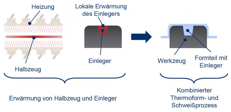 Mithilfe eines kombinierten Umform- und Schweißprozesses soll zukünftig die Gestaltungsfreiheit von Thermoformbauteilen erhöht sowie an die von Spritzgießbauteilen angenähert werden. Das Thermoformen zeichnet sich zwar insbesondere bei der Herstellung großflächiger oder gehäuseartiger Bauteile durch eine hohe Wirtschaftlichkeit aus, jedoch ist die Gestaltungsfreiheit des Thermoformens im Vergleich zum Spritzgießen eingeschränkt. Funktionselemente wie beispielsweise Rippen, Schraubdome oder Schnapphaken können nur durch Hinterspritzen oder einen anschließenden anderen Fügeprozess angebracht werden. ![]() Kombinierter Thermoform- und Schweißprozess zur Verbindung von Gestaltelementen mit einem thermogeformten Halbzeug - (Bild: IKT). Dieser Nachteil kann nun durch das patentierte „Thermoformen mit integrierten Gestaltelementen“ behoben werden. Dabei handelt es sich um einen kombinierten Thermoform- und Schweißprozess, bei dem ein Einlegeteil, beispielsweise ein Schraubdom, vor dem Thermoformen im Werkzeug platziert und dann direkt während der Abformung mit dem heißen Halbzeug verschweißt wird. Dazu erforscht das Institut für Kunststofftechnik (IKT) der Universität Stuttgart in einem von der Deutschen Forschungsgemeinschaft (DFG) geförderten Projekt die werkstofflichen und prozessspezifischen Grundzusammenhänge bei diesem kombinierten Thermoform- und Schweißprozess. Weitere Informationen: www.ikt.uni-stuttgart.de, www.uni-stuttgart.de |