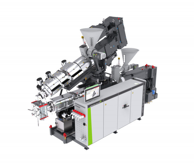 ![]() ![]() Coextrusionsanlage twinEX mit montiertem conEX und Mehrschicht-Coextrusionswerkzeug von Exelliq - (Bild: battenfeld-cincinnati). Auf der K 2025 zeigt das Unternehmen exemplarisch eine "Huckepack"-Anordnung bestehend aus einem parallelen Doppelschneckenextruder "twinEX 78" und einem konischen Einschneckenextruder "conEX NG 65". Ergänzt wird die Linie durch ein Mehrschicht-Coextrusionswerkzeug des Schwesterunternehmens Exelliq sowie einen PVC-Mono-Rohrkopf "Spider NG 250". Die Huckepack-Bauweise soll sich insbesondere für Produktionsstandorte mit begrenzter Fläche eignen. Im ausgestellten Fall fungiert der "twinEX" als Hauptextruder, dessen 34 D lange Verfahrenseinheit und optimierte Schneckengeometrie hohe Durchsätze bei PVC ermöglichen sollen. Temperaturgenauigkeit und Schmelzequalität werden durch das Kühlsystem "Intracool" sowie ein Luftkühlsystem im Zylinder unterstützt. Der aufgesetzte "conEX NG" verfügt über eine verlängerte Vorwärmzone und ein angepasstes Schneckendesign, das hohe Leistungen bei geringem Schereintrag erlauben soll. Beide Extruder können neben Neuware auch c-PVC, modifizierte PVC-Typen sowie Rezyklate mit niedrigen Schüttgewichten verarbeiten. Die Kombination biete zusätzlich Vorteile durch gemeinsame Steuerungstechnik, reduzierte Kosten und eine flexible Werkzeuganbindung. Als weitere Neuentwicklung wird die überarbeitete Rohrkopfserie "Spider NG" vorgestellt. Diese soll sich durch hohe Durchsätze und eine gleichmäßige Wandstärkenverteilung auszeichnen. Mit einem neuen Spannsystem sollen sich Dimensionswechsel schneller durchführen lassen. Durch den modularen Aufbau können Anwender zwischen verschiedenen Volumina und optionaler Kompressionsstufe wählen. Auch der zugehörige Unterstützungswagen ist variabel ausgelegt und kann hydraulisch oder elektrisch betrieben werden. K 2025, 08.-15. Oktober 2025, Düsseldorf, Halle 16, Stand B19 Weitere Informationen: www.battenfeld-cincinnati.com |
