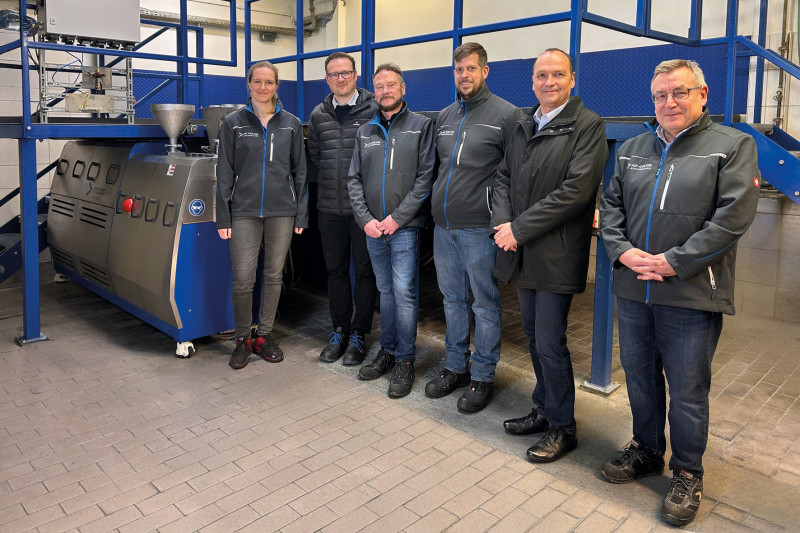 ![]() Gruppenbild am Tag der Einweihung v.l.n.r.: Kathrin Portugall (stellv. Produktionsleiterin AF-Color), Heiko Hornberger (Betriebsleiter Feddem), Thomas Korn (Produktionsleiter AF-Color), Michael Mertens (Technischer Leiter AF-Color), Dieter Groß (Geschäftsführer Feddem), Dirk Steinbrück (Geschäftsführer, AF-Color, Zweigniederlassung der Akro-Plastic GmbH) - (Bild: Feddersen Group). Mit der neuen Anlage erweitert AF-Color die Entwicklungs- und Versuchskapazitäten für Additivkonzentrate der Produktfamilie „AF-Complex“ sowie für Farbmasterbatches der Produktfamilie „AF-Color“. Zudem wird die Flexibilität bei Kleinserienproduktionen erhöht. Nach Angaben des Unternehmens stand im Fokus, Entwicklungsprozesse zu beschleunigen und den Transfer in die Produktion zu erleichtern. Hierzu wurde der gesamte Arbeitsprozess analysiert und technische Anforderungen bereits in der Konzeptphase berücksichtigt. Technische Anpassungen und Sonderlösungen Im Zuge des Projekts wurden mehrere konstruktive Änderungen umgesetzt. Die FSB-Seitenbeschickungen wurden von einem Schwenkarm auf einen verfahrbaren Schlitten umgestellt. Dies vereinfacht das Handling und reduziert den Aufwand bei Umrüstvorgängen. Schnellverschlüsse, zusätzliche Haltegriffe sowie eine optimierte Führung auf Gleitschienen ermöglichen es, Arbeiten an den FSB-Seitenbeschickungen und der FSV-Seitenvakuumentgasung vollständig von der Bedienseite des Extruders auszuführen. Erstmals wurde bei der Baugröße 26 eine kühlbare FSB-Seitenbeschickung realisiert. Diese Ausführung erlaubt die sichere Dosierung niedrigschmelzender Materialien und soll das Risiko von Agglomeration oder Einlaufblockaden reduzieren, insbesondere bei sensiblen Additivsystemen. ![]() Der Extruder FED 26 MTS wurde für diesen speziellen Einsatz in der Höhe angepasst, sodass er optimal unter die neue bei AF-Color installierte Arbeitsbühne passt - (Bild: Feddersen Group). Die Linie ist variabel ausgelegt: Ein Wechsel zwischen 32 L/D und 42 L/D ist durch Umbaumaßnahmen ebenso möglich wie der Wechsel zwischen Strang- und Unterwassergranulierung. Dadurch kann die Anlage an unterschiedliche Produkt- und Verfahrensanforderungen angepasst werden. Modernisierung der Produktionslinie FED 43 MTS Parallel zur Inbetriebnahme des FED 26 MTS wurde eine bestehende Produktionsanlage der Modellreihe FED 43 MTS technisch überarbeitet. Die Linie erhielt vergleichbare Ausstattungsmerkmale, darunter FSB-Seitenbeschickungen, FSV-Seitenvakuumentgasung, variable Verfahrenslängen sowie die Möglichkeit, zwischen Strang- und Unterwassergranulierung zu wechseln. Mit der Angleichung der technischen Optionen soll die Vergleichbarkeit von Entwicklungs- und Produktionsprozessen verbessert und die Übertragbarkeit von Verfahren auf die Produktionsanlage erleichtert werden. Künftig wird die modernisierte FED 43 MTS für die kommerzielle Fertigung von Additivmasterbatches des Portfolios „AF-Complex“ eingesetzt. Projektumsetzung Das Projekt wurde von regelmäßigen Abstimmungen zwischen den Teams von AF-Color und Feddem begleitet. Nach Unternehmensangaben standen dabei technische Detailfragen, Prozessanforderungen und praxisorientierte Lösungen im Mittelpunkt. Die Übergabe der Anlagen erfolgte im Beisein der Geschäftsführungen beider Unternehmen, die den beteiligten Mitarbeitenden für die Umsetzung des Projekts dankten. Mit der neuen und modernisierten Anlagentechnik sollen Entwicklungs- und Produktionsprozesse künftig enger verzahnt werden. Weitere Informationen: |