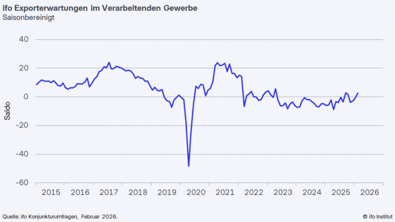 Die Stimmung in der deutschen Exportwirtschaft hat sich erneut verbessert. Die ifo Exporterwartungen stiegen im Februar auf plus 2,6 Punkte, nach minus 0,8 Punkten im Januar. „Die Exportwirtschaft startet mit etwas Rückenwind ins neue Jahr“, sagt Timo Wollmershäuser, Konjunkturchef des ifo Instituts. „Von einer breit angelegten und dynamischen Erholung kann jedoch noch keine Rede sein.“ Besonders die Hersteller von elektronischen und optischen Erzeugnissen blicken optimistischer auf das Auslandsgeschäft. Auch in der Automobilbranche zeichnet sich ein stabiles Exportgeschäft ab; die Erwartungen legten hier erneut zu. Bei den Herstellern von Nahrungsmitteln und Möbeln drehten die Erwartungen in den positiven Bereich – die Auslandsumsätze sollen steigen. Im Metallbereich verbesserte sich der Indikator zwar, derzeit werden die Exporte jedoch eher konstant eingeschätzt. Mit rückläufigen Ausfuhren rechnen dagegen das Papiergewerbe, die Druckindustrie sowie die Chemische Industrie. „Die jüngsten Entscheidungen zur US-Zollpolitik sorgen für neue Unsicherheit“, sagt Wollmershäuser. „Wenn sich Zollregelungen ständig ändern, erschwert das die Planung für die Unternehmen.“ Weitere Informationen: www.ifo.de |