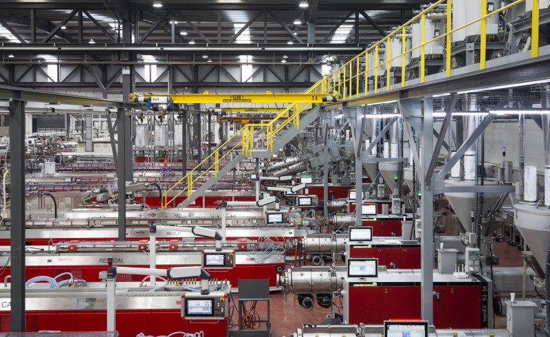Der spanische Profilhersteller Cortizo hat neun weitere Extruder bei battenfeld-cincinnati Wien bestellt und installiert. Wie der Maschinenbauer weiter mitteilt, umfasst die Lieferung sieben parallele sowie zwei konische, gegenläufig arbeitende Doppelschneckenextruder. Mit dem Ausbau erhöht sich demzufolge die Zahl der bei Cortizo betriebenen PVC-Extrusionslinien auf insgesamt 28. Bis auf eine Anlage stammen sämtliche Linien aus dem Werk Wien. Die Zusammenarbeit zwischen Cortizo und battenfeld-cincinnati begann 2014. Damals erwarb das bis dahin auf Aluminiumprofile spezialisierte Unternehmen seine erste PVC-Extrusionslinie aus Wien und stieg in die Produktion von PVC-Profilen ein. Seither wurde die Kapazität kontinuierlich erweitert. Nach Unternehmensangaben verarbeitet Cortizo aktuell rund 50.000 Tonnen PVC pro Jahr zu Profilen. Weiteres Wachstum ist geplant. Cortizo produziert jährlich rund 150.000 Tonnen Aluminiumprofile sowie 50.000 Tonnen PVC-Profile und zählt damit zu den größeren Profilherstellern in Europa. Das Unternehmen beschäftigt mehr als 3.800 Mitarbeitende und betreibt neun Produktionsstandorte in Europa sowie 87 Vertriebsstandorte weltweit. Die Profile werden überwiegend für den spanischen Heimatmarkt sowie für weitere europäische Märkte gefertigt. In Spanien sind insgesamt 30 Extruder aus Wien im Einsatz, die Fenster- und Türprofile in unterschiedlichen Geometrien und Farben herstellen. In den vergangenen zehn Jahren installierte battenfeld-cincinnati bei Cortizo 17 parallele Doppelschneckenextruder der Baureihe twinEX in den Baugrößen 78 und 93 sowie 13 konische Doppelschneckenextruder der Reihe conEX in den Größen 50, 54 und 65. Neun der conEX-Maschinen werden als Hauptextruder eingesetzt, vier sind in Coextrusionslinien integriert. Die Coextruder sind in Huckepack-Ausführung ausgeführt und vollständig in die Steuerung des jeweiligen Hauptextruders eingebunden. Durch eine universelle Höhen- und Neigungseinstellung können bestehende Werkzeuge angebunden werden. Die konische Baureihe ist für die Verarbeitung unterschiedlicher PVC-Typen ausgelegt und für Werkzeugdrücke bis zu 520 bar konzipiert. Die parallelen twinEX-Extruder decken einen breiten Ausstoßbereich ab und ermöglichen den Einsatz verschiedener Werkzeuge auf einer Maschine. Dies unterstützt eine flexible Produktionsplanung. Nach Herstellerangaben verfügen alle eingesetzten Extruder über ein abgestimmtes Verhältnis von mechanischem und thermischem Energieeintrag. In Kombination mit angepassten Schneckengeometrien soll dadurch über einen breiten Leistungsbereich eine konstante Schmelzequalität erreicht werden. Im Rahmen der langjährigen Zusammenarbeit wurden spezifische Schneckengeometrien für die bei Cortizo eingesetzten Materialien entwickelt. Die aktuelle Maschinengeneration ist mit einer neuen Steuerung ausgestattet und kann in kundenseitige ERP-Systeme eingebunden werden. battenfeld-cincinnati produziert Extruder und komplette Extrusionslinien für Anwendungen in den Bereichen Rohr, Profil, Platte, Folie und Granulierung. Das Unternehmen unterhält Produktionsstandorte in Bad Oeynhausen und Kempen (Deutschland), Wien (Österreich), Shunde (China) und McPherson, Kansas (USA). Es ist Teil der Davis-Standard Corporation, USA. Weitere Informationen: www.battenfeld-cincinnati.com, www.cortizo.com |