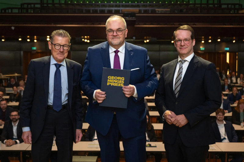 ![]() Verleihung des Georg-Menges-Preis 2026: Dipl.-Ing. Markus Lüling (Mitte) erhält den Georg Menges Preis 2026. Im Bild Dr. Herbert Müller (l.) und Prof. Christian Hopmann (r.) - (Bild: DF.Fotografie). Der Preis erinnert an Prof. Dr. Georg Menges, ehemaligen Leiter des Lehrstuhls für Kunststoffverarbeitung an der RWTH Aachen und Direktor des IKV. Er würdigt Persönlichkeiten, die sich um die Übertragung wissenschaftlicher Erkenntnisse in industrielle Anwendungen verdient gemacht haben. Markus Lüling ist Diplom-Ingenieur und seit vielen Jahren im deutschsprachigen Kunststoffjournalismus tätig. Als Chefredakteur verantwortet er die redaktionelle Ausrichtung von „K-Profi“ und berichtet über technische Entwicklungen sowie Branchentrends in der Kunststoff- und Kautschukverarbeitung. Nach seinem Maschinenbau-Studium mit Vertiefungsrichtung Kunststoff-Technik an der RWTH Aachen begann Markus Lüling als Redakteur bei der Fachzeitschrift "Kunststoffe", machte sich dann schon nach wenigen Jahren selbständig und arbeitete über lange Zeit als Kommunikationsdienstleister und Fachjournalist, insbesondere für die "K-Zeitung", bevor er im Jahr 2012 selbst eine Fachzeitschrift und den gleichnamigen "Kunststoff-Profi"-Verlag gründete. Weitere Informationen: www.ikv-aachen.de |