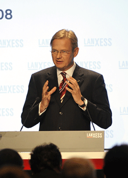 Das laufende Quartal entwickelt sich für den Spezialchemie-Konzern LANXESS AG (www.lanxess.com) nach Angaben des Vorstandsvorsitzenden Axel C. Heitmann (Bild) gut. Für das Gesamtjahr rechnet er unverändert mit einer weiteren operativen Umsatzsteigerung und einem EBITDA vor Sondereinflüssen von über 700 Mio. Euro. Weiterhin, so Heitmann, setzt man außer auf organisches Wachstum durch Investitionen in bereits existierenden Geschäftsfeldern auch auf Zukäufe. Ziel dieses externen Wachstums sei es, das Produktportfolio des Unternehmens sukzessive zu verbreitern und zu stärken. Dritte Wachstumssäule sollen weiter die Forschung und Entwicklung innovativer Produkte sein. Wachstum in den BRIC-Staaten generieren Im Fokus steht die verstärkte Expansion in die BRIC-Staaten. Neben den Projekten in Brasilien, Indien und China bereitet man nun den Eintritt in den russischen Markt vor. So wird der Konzern am 1. Januar 2009 mit einer eigenen Landesgesellschaft in Russland an den Start gehen. Im ersten Schritt wird eine Niederlassung in Moskau eröffnet, eine Plattform für weiteres Engagement in den Ländern der GUS. In Russland wächst der Chemiemarkt um jährlich mehr als 5 Prozent. "Davon müssen und wollen wir in signifikantem Ausmaß künftig profitieren", so Heitmann. "Wir halten ein jährliches Umsatzwachstum von bis zu 20 Prozent für realistisch." Wie bereits berichtet, wird Lanxess gleichzeitig seinen Standort Antwerpen in Belgien mit Investitionen von rund 35 Millionen Euro stärken und die Caprolactam-Produktion ausbauen (siehe plasticker-News vom 18.9.2008). Dabei bleibt das Unternehmen im Kern jedoch dem Stammland verbunden. Allerdings werde man in den beiden nächsten Jahren einige Kilometer weiter ziehen und den Unternehmenssitz von Leverkusen nach Köln verlegen, kündigte Axel C. Heitmann an. Das dürfte das sichtbarste Zeichen der Trennung der Lanxess AG von der "alten" Mutter, dem Bayer-Konzern, vor rund vier Jahren sein. |
