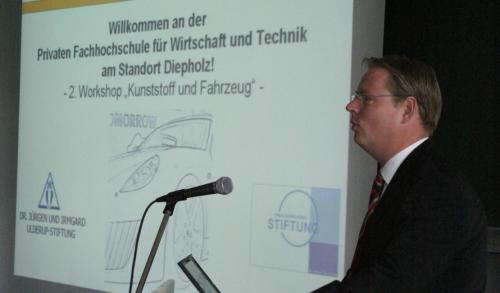 Am 13.6.2009 fand an der Privaten Fachhochschule für Wirtschaft und Technik am Standort Diepholz der 2. Workshop zur Themenstellung "Kunststoff und Fahrzeug" statt. Professor Kersten, Präsident der Privaten Fachhochschule für Wirtschaft und Technik, begrüßte ca. 100 Personen aus den Landkreisen Diepholz, Vechta, Osnabrück, Oldenburg und Cloppenburg zu dieser Veranstaltung. Professor Carsten Bye (Bild), der für die Durchführung der Veranstaltung verantwortlich war und durch den Tag führte, hatte 4 Experten aus dem Bereich der Kunststoffherstellung und -verarbeitung nach Diepholz eingeladen, um den interessierten Zuhörern aus deren Aufgabenfeld zu berichten. Werkstoffentwicklungen und Werkzeugauslegung Dr. Templin aus dem Hause der Elastogran berichtete über aktuelle Werkstoffentwicklungen aus dem BASF-Konzern. Interessante Ansätze konnten im Rahmen des Vortrags gerade im Bereich des Leichtbaus und der Reduzierung von Energie aufgezeigt werden. Etwas spezieller wurde es dann, als Rudolf Hein aus der Praxis seiner Beratungstätigkeit im Rahmen von Optimierungsprozessen für die Werkzeugauslegung für Kunststoffbauteile berichtete. Hein ist Geschäftsführer des gleichnamigen Konstruktionsbüros und konnte mit Beispielen aus der Praxis überzeugend darlegen, welche Möglichkeiten heute die Finite Elemente Berechnung im Bereich der Simulation von Schrumpfung und Verzug bietet. Stahlwerkstoffe für den Formenbau Nach einer gemeinsamen Mittagspause mit der Möglichkeit des Gespräches und der Stärkung am Buffet berichtete Herr K. Haus aus München aus dem Alltag der STM Stahl-Vertriebs GmbH. Hau gilt als Experte für unterschiedliche Stahlwerkstoffe, die bei der Herstellung von Werkzeugen zur Kunststoffbauteilherstellung eingesetzt werden. Schon heute und auch zukünftig werden immer anspruchsvollere Werkzeugstähle für den Formenbau benötigt, weil beispielsweise Kunststoffe verarbeitet werden, die mit Glasfasern zur Festigkeitssteigerung durchmischt sind. Diese Glasfasern haben während der Verarbeitung den Nachteil, dass sie den Werkzeugstahl stark verschleißen und schon nach kurzer Zeit müssen dann Nacharbeiten am Werkzeug erfolgen. Hier stellte Hau neue Werkstoffkonzepte vor, die diesem Problem begegnen und Lösungen anbieten. Klebtechnik für Kunststoffe Zum Ende der Vortragsveranstaltung zeigte Dipl.-Ing. M. Peschka vom Fraunhofer Institut für Fertigungstechnik und Angewandte Materialforschung aus Bremen auf, welche Möglichkeiten die moderne Klebtechnik auch für Kunststoffe bietet. Peschka zeigte deutlich auf, dass es den Universalklebstoff, wie wir ihn aus der Werbung kennen, nicht geben kann. Für jede Anwendung gibt es spezielle Lösungen und entsprechende Klebstoffe. Werden bei der Verarbeitung des Klebstoffes die notwendigen Verarbeitungshinweise berücksichtigt, dann hält die Klebverbindung, versicherte Peschka. Zum Ende der Veranstaltung bedankte sich Prof. Bye bei den Referenten und den Gästen der Veranstaltung. Besonderer Dank galt der Dr. Jürgen und Irmgard Ulderup-Stiftung und der Hans-Georg-Ring-Stiftung, die durch ihre Unterstützung ermöglichten, dass die Teilnahme an der Vortragsveranstaltung für die Teilnehmer kostenfrei war. Vortragsfolien zum Download Die Folien der einzelnen Vorträge stehen noch bis zum 19.7.2009 auf der Homepage der FHWT (www.fhwt.de) zum Download bereit. Für den Download ist eine Anmeldung mit dem Benutzernamen: Workshop und der Angabe des Kennworts: FHWT09 erforderlich. |