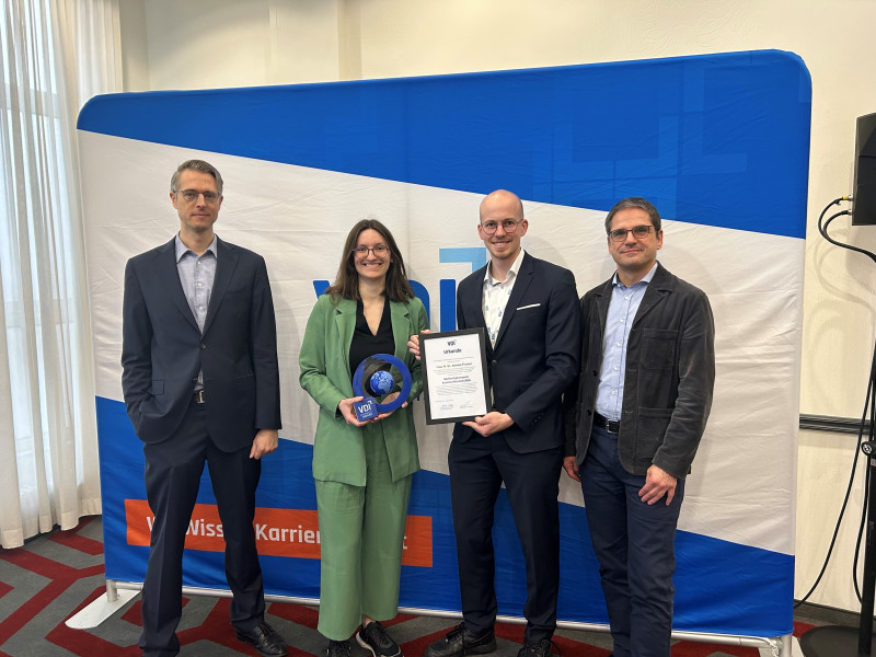 ![]() Bei der Preisverleihung, v.l.n.r.: Daniel Schröder, VDI e.V.; Annika Fischer, Neue Materialien Bayreuth GmbH; Christian Töpfer, Polymer Engineering, University of Bayreuth; Martin Würtele, Hochschule Rosenheim - (Bild: Claas Sudbrake). Ausgezeichnet wurde die Masterarbeit mit dem Titel „Einfluss der Kettenverlängerung von recyceltem Polyethylenterephthalat auf die Morphologie, die rheologischen Eigenschaften und das Schäumverhalten im zweistufigen Autoklavprozess“. Die Arbeit untersucht die Auswirkungen der Kettenverlängerung von recyceltem PET (rPET) auf strukturelle und verarbeitungstechnische Eigenschaften des Materials. Im Mittelpunkt stehen die Zusammenhänge zwischen Morphologie, rheologischem Verhalten und Prozessführung im zweistufigen Autoklavprozess. Die Untersuchung zeigt, wie durch gezielte Kettenverlängerung die Materialeigenschaften von rPET beeinflusst und das Schäumverhalten optimiert werden können. Dadurch werden Ansätze für ein werkstoffliches Upcycling von Rezyklaten aufgezeigt. Insbesondere das Schäumen ermöglicht Materialeinsparungen und eröffnet Potenziale für ressourceneffiziente Anwendungen. Die Arbeit behandelt zudem die industrielle Skalierbarkeit der Kettenverlängerung von rPET und bewertet die ökonomischen sowie ökologischen Effekte quantitativ. Daraus ergeben sich Anknüpfungspunkte für weiterführende Untersuchungen und eine mögliche Umsetzung in der industriellen Praxis. Mit der Auszeichnung würdigt die VDI-GME wissenschaftliche Beiträge, die zur nachhaltigen Weiterentwicklung der Kunststofftechnik beitragen, und unterstützt den Wissenstransfer zwischen Forschung und industrieller Anwendung. Weitere Informationen: www.vdi.de |