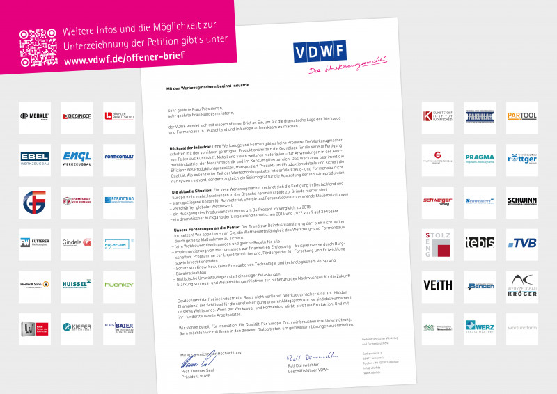 Der Verband Deutscher Werkzeug- und Formenbauer (VDWF) hat sich in einem offenen Brief an die Bundesministerin für Wirtschaft und Energie, Katherina Reiche, sowie an die Präsidentin der Europäischen Kommission, Ursula von der Leyen, gewandt. Darin fordert der Verband kurzfristige und konkrete politische Maßnahmen zur Stabilisierung und langfristigen Sicherung des Werkzeug- und Formenbaus in Europa. Nach Einschätzung des Verbands ist die Zukunft dieser Schlüsselbranche durch wirtschaftliche und strukturelle Entwicklungen zunehmend gefährdet. Der Werkzeug- und Formenbau gilt als zentrale Grundlage der industriellen Produktion. Werkzeuge und Formen sind Voraussetzung für die Herstellung von Bauteilen aus Kunststoff, Metall und anderen Materialien und damit für zahlreiche industrielle Wertschöpfungsketten. Sie kommen unter anderem in der Automobilindustrie, der Medizintechnik sowie bei Konsumgütern und Verpackungen zum Einsatz und tragen maßgeblich Produkt- und Produktionswissen. Der VDWF vertritt mehr als 500 Unternehmen der Branche, die überwiegend mittelständisch geprägt sind. Neben deutschen Mitgliedern gehören auch Unternehmen aus Österreich, der Schweiz, Slowenien, Schweden, Serbien und Ungarn zum Netzwerk. Der Verband versteht sich entsprechend als europäisch ausgerichtete Interessenvertretung des Werkzeug- und Formenbaus. Wirtschaftliche Lage als alarmierend beschrieben In seinem Schreiben weist der Verband auf eine aus seiner Sicht kritische wirtschaftliche Situation des Sektors hin. Steigende Kosten, verschärfter internationaler Wettbewerb und ein deutlicher Rückgang von Produktionsvolumen und Umsatzrenditen belasteten die Unternehmen erheblich. Zugleich sei der Werkzeug- und Formenbau für zahlreiche industrielle Produktionsprozesse unverzichtbar und damit systemrelevant. Der VDWF warnt vor einer fortschreitenden Deindustrialisierung und fordert politische Maßnahmen zur Sicherung der Wettbewerbsfähigkeit der Branche. Nach Angaben des Verbands ist die wirtschaftliche Entwicklung bereits durch sinkende Produktionszahlen und eine zunehmende Zahl von Insolvenzen gekennzeichnet. Wettbewerbsdruck durch internationale Förderpolitik Besonders kritisch bewertet der Verband die Wettbewerbssituation gegenüber Anbietern aus China. Dort werde die strategische Bedeutung des Werkzeug- und Formenbaus politisch erkannt und durch umfangreiche staatliche Förderprogramme unterstützt. In Europa hingegen fehle es aus Sicht des VDWF bislang an vergleichbaren industriepolitischen Maßnahmen, wodurch europäische Unternehmen an Wettbewerbsfähigkeit verlieren könnten. Zu den vom Verband vorgeschlagenen Maßnahmen gehören unter anderem die Durchsetzung fairer Wettbewerbsbedingungen im internationalen Handel, finanzielle Entlastungen für Unternehmen sowie eine stärkere öffentliche Förderung von Innovation, Aus- und Weiterbildung. Auch der Schutz geistigen Eigentums wird als zentraler Faktor für die Zukunft der Branche genannt. Bedeutung für den Industriestandort Der VDWF betont, dass der Werkzeug- und Formenbau eine zentrale Rolle für die industrielle Basis in Deutschland und Europa spielt. Ein struktureller Rückgang der Branche hätte nach Einschätzung des Verbands weitreichende Auswirkungen auf industrielle Produktionsketten, technologische Innovationsfähigkeit und Beschäftigung. Vor diesem Hintergrund ruft der Verband zu einem intensiveren Dialog zwischen Politik und Industrie auf, um Maßnahmen zur Sicherung der Wettbewerbsfähigkeit und zur Stabilisierung des Sektors zu entwickeln. Der offene Brief wird durch eine Petition begleitet, die von Unternehmen der Branche sowie weiteren Interessierten unterstützt werden kann. Eine Online-Unterzeichnung sowie eine Übersicht der bisherigen Unterzeichner sind über die Website des VDWF unter www.vdwf.de/offener-brief abrufbar. Weitere Informationen: www.vdwf.de |