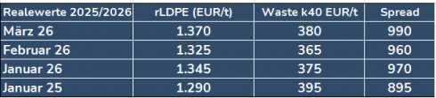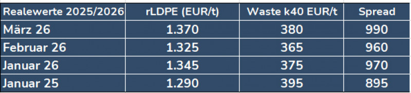 Die Preisentwicklung auf den europäischen Polymermärkten hat sich seit Ende Februar 2026 deutlich verändert. Auslöser sind geopolitische Verwerfungen, die innerhalb kurzer Zeit zu erheblichen Preisbewegungen bei primärem LDPE geführt haben. Die Spotpreise stiegen von rund 1.150 EUR/t im Februar auf bis zu 1.700 EUR/t Mitte März. In den Monatsverhandlungen für März wurden zudem Aufschläge von bis zu 500 EUR/t gefordert, wodurch das Preisniveau für Neuware auf über 2.000 EUR/t anstieg. Nach Einschätzung des Recycario Data Science Institute und der prognostica GmbH verliert primäres LDPE damit einen wesentlichen Teil seines bisherigen Preisvorteils gegenüber rLDPE-Regranulaten. Die bisherige Marktstruktur, in der Neuware über längere Zeit preislich günstiger verfügbar war, gerät dadurch unter Druck. Für den Markt für Regranulate ergeben sich daraus veränderte Wettbewerbsbedingungen und eine spürbar erhöhte Dynamik. Besonders deutlich zeigt sich dies in der Entwicklung des Preisgefüges bei rLDPE. Der Abstand zwischen den Preisen für Ballenware der Sorte K40 als Inputmaterial und den Verkaufspreisen für rLDPE-Regranulat hat sich merklich verringert. Während zwischen Inputkosten und Regranulatpreisen historisch ein vergleichsweise stabiler Spread bestand, ist dieser Abstand im aktuellen Marktumfeld deutlich geschrumpft. Dies weist darauf hin, dass Recycler steigende Rohstoffkosten bislang nur eingeschränkt und mit Verzögerung an den Markt weitergeben konnten. Im März zog das Preisniveau für rLDPE zwar an, die Entwicklung fiel jedoch je nach Qualitäten unterschiedlich aus. Im unteren Preissegment wurden teils kurzfristige Preisbewegungen von mehr als 50 EUR/t beobachtet. Hochwertige und sortenreine Qualitäten verteuerten sich mit etwa 40 EUR/t etwas moderater. Trotz dieser Aufschläge bleibt der Margendruck für Recycler hoch. Nach der vorliegenden Einschätzung reicht die bisherige Preisreaktion nicht aus, um die gestiegenen Kosten aufzufangen. Für viele Anbieter wird eine deutlich stärkere Preisanhebung bei Regranulaten als notwendig angesehen, um die aktuelle Kostenstruktur überhaupt noch abdecken zu können. ![]() Das Liniendiagramm zeigt die Entwicklung von rLDPE-Preisen (historisch und prognostisch) – „value ldpe Actuals (Hist.)“, bzw. „Forecast Custom“(schwarz / orange) (Die weiteren Linien stellen reine Verlaufskurven dar und beziehen sich nicht auf die linksseitige Skala) - im Verhältnis zu Ballenware (K40) – „value-k-40 Actuals / Custom“ (blau). Auffällig ist die Annäherung der Preislinien im aktuellen Szenario, was auf eine zunehmende Margenkompression im Recyclingprozess hinweist - (Diagramm: Recycario). Parallel zur Preisentwicklung nahm auch die Handelsaktivität spürbar zu. Auf einem beobachteten europäischen Online-Marktplatz wurden im März rund 4.000 Tonnen rLDPE gehandelt. Im Januar lagen die erfassten Mengen noch bei etwa 1.300 Tonnen, im Februar bei rund 1.500 Tonnen. Der deutliche Volumenanstieg wird als Hinweis darauf gewertet, dass die Substitution von Primärmaterial durch Regranulat bereits eingesetzt hat. Auffällig ist dabei, dass ein erheblicher Teil der gehandelten Mengen aus europäischen Recyclingquellen stammt. Mit dem Nachfrageanstieg rückt zugleich die Verfügbarkeit von Ressourcen stärker in den Mittelpunkt. Ein wesentlicher Teil der jüngsten Marktbewegung dürfte nach Einschätzung der Analyse durch vorhandene Lagerbestände gedeckt worden sein. Sollte die erhöhte Nachfrage anhalten, könnten kurzfristig Engpässe bei Inputmaterialien entstehen. Vor allem die Versorgung mit Ballenware der Sorte K40 gewinnt damit an Bedeutung. Da gleichzeitig die Preise für Primärmaterial hoch bleiben und globale Lieferketten weiter beeinträchtigt sind, ist kurzfristig keine spürbare Entlastung durch Importe zu erwarten. Im Vergleich zum Primärmarkt zeigt sich die Preisentwicklung bei rLDPE insgesamt deutlich stabiler. In einer indexierten Betrachtung mit Basis Q4 2023 = 100 liegt das Preisniveau im Frühjahr 2026 bei rund 113 Punkten. Der Anstieg fällt damit moderat aus und verweist auf eine im Verhältnis höhere Planbarkeit. Während der Primärmarkt von starken Ausschlägen geprägt ist, erweist sich Regranulat zunehmend als berechenbarer Beschaffungsfaktor. Insgesamt deutet die Entwicklung darauf hin, dass rLDPE-Regranulate ihre Rolle im europäischen Beschaffungsmarkt ausbauen. Der Verlust des Preisvorteils von Neuware, die gestiegene Handelsaktivität und die vergleichsweise stabile Preisentwicklung verschieben die Marktgewichte. Gleichzeitig verschärfen sich die Anforderungen an die Rohstoffversorgung der Recycler, insbesondere mit Blick auf die Verfügbarkeit geeigneter Inputmaterialien. Weitere Informationen: www.recycario.com, www.prognostica.de |