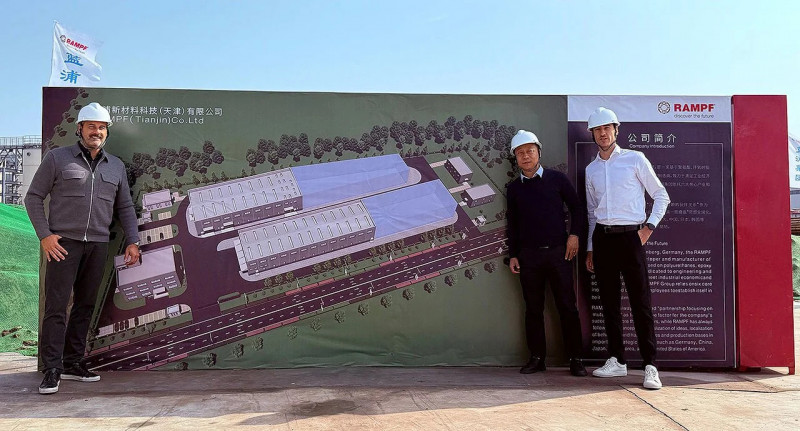 ![]() From left to right: Michael Rampf (CEO, Rampf Group) and Tiger Meng (General Manager, Rampf China) together with Luca Girke (Project Manager, Rampf Advanced Polymers). - (Image: Rampf Group) The new location in the Chemical Industrial Park of the Tianjin Economic and Technological Development Area (TEDA) covers 23,500 square meters and is scheduled to be operated as a systems house for reactive resin systems based on polyurethane, silicone, and epoxy from July 2026. These materials are used for sealing, casting, bonding, as well as in model and mold making, and are utilized in sectors including the automotive industry, electromobility, electrical and electronic manufacturing, the household appliance industry, and the packaging sector. Advertisement The facility in Tianjin includes a production and office building, storage capacities, a laboratory, and an application engineering center. With the new plant, Rampf will have two production hubs in China in the future: the existing site in Nantong and the new unit in Tianjin. The company expects the additional capacities to cover the increasing demand from both Chinese and international customers. According to the company, the construction of the site was facilitated by local political support. Rampf sees the expansion in China as an essential part of its global growth strategy, as the market for high-performance and specialty materials in the region continues to grow dynamically and demands high quality standards. More information: www.rampf-group.com |