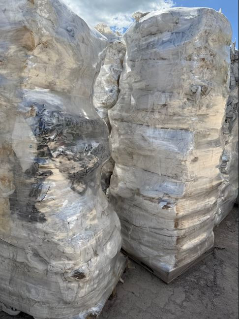 Wir bieten aktuell PES-Vliesstoffe in gepressten Ballen zum Verkauf an. Das Material ist sortenrein getrennt in Weiß und Bunt verfügbar. Es ist auf Paletten, wobei jede Palette ein Gewicht von ca. 600 kg aufweist. Derzeit stehen etwa 2 LKW-Ladungen zur sofortigen Verfügung. Das Material eignet sich ideal zur Weiterverarbeitung oder zum Recycling.