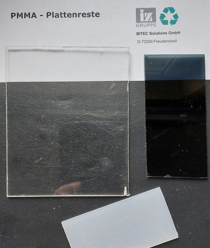 PMMA-Plattenreste, Schneidabfälle aus der Konfektionierung von Scheiben, mehrere Farben - siehe Bild.