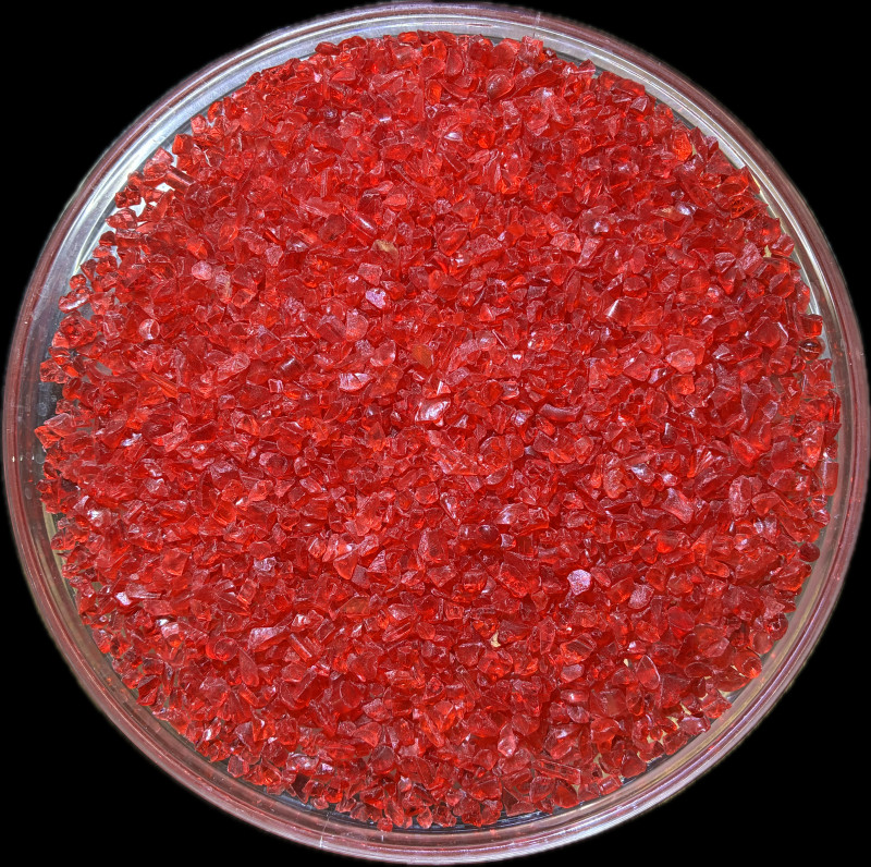 PIR PMMA, gewonnen aus der Herstellung von Automobil-Rückleuchten. Dieses Material wurde in unserer Sortieranlage aufbereitet, inklusive Entstaubung, Größensortierung und Polymersortierung.
