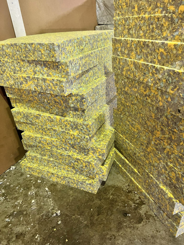 Post industrial recycled, from foam off-cuts of mattress production, Block dimensions (max).: 1600 x 2000 x H (thickness desired), Density: 50 and 60 for mattresses and furniture, Weights.: 55 kg/m3 for 50 density and 65 kg/m3 for 60 density, Min order.: 40 HC // 60-65 m3.In order to see the user's address, you must be registered and logged in to the marketplace. Please log in now:
