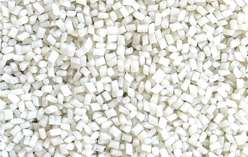 Recyceltes Polyamid 6 (rPA6) Regranulat, natur, mit mittlerer Fließfähigkeit.