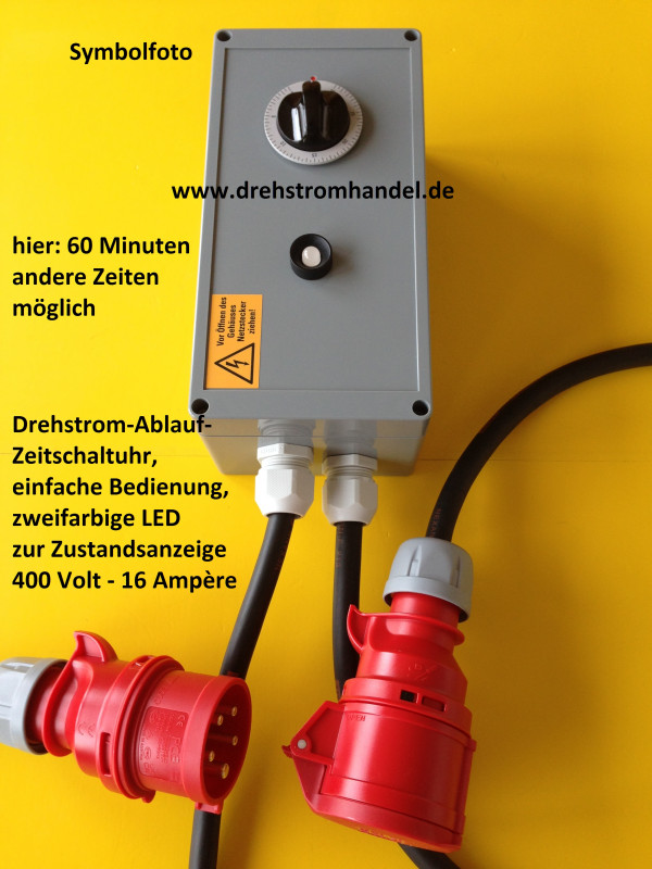 Drehstrom-Ablauf-Zeitschaltuhr, hier: für 60 Minuten Laufzeit, 400 Volt - 16 Ampère