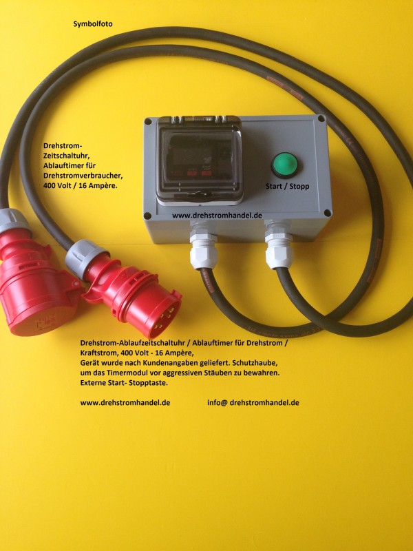 Drehstrom-Ablauftimer, Zeitschalter, 400 Volt / 16 Ampère - Staubschutz, externe Start-Stopptaste