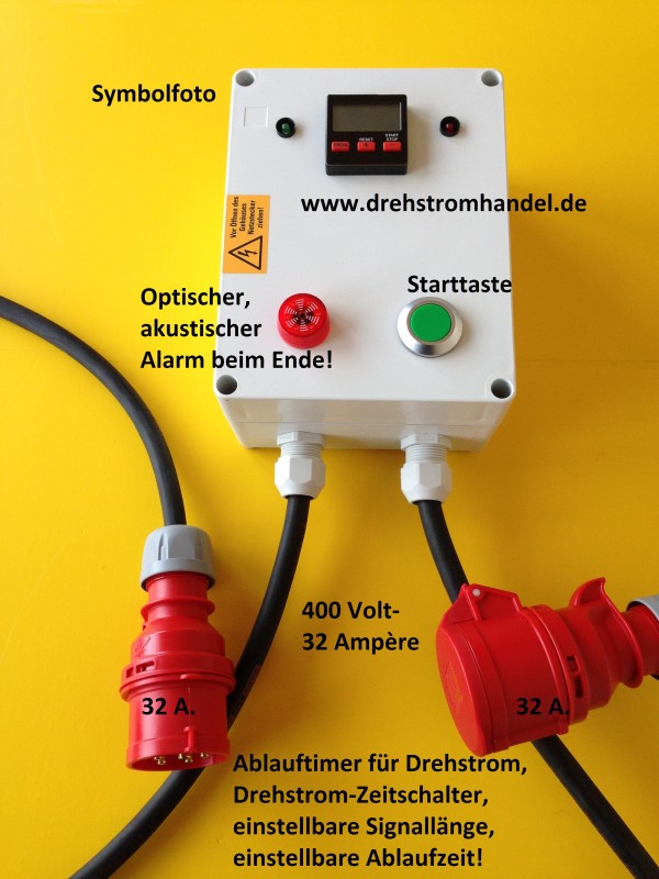 Drehstrom-Ablauftimer, Zeitschalter, 400 Volt / 32 Ampère, einstellbares akustisches und optisches Signal am Ende