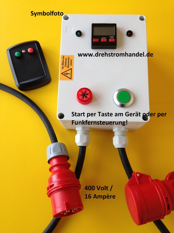 Drehstrom-Ablauftimer mit Funkstart, 400 Volt / 16 Ampère, einstellbares akustisches und optisches Signal am Ende