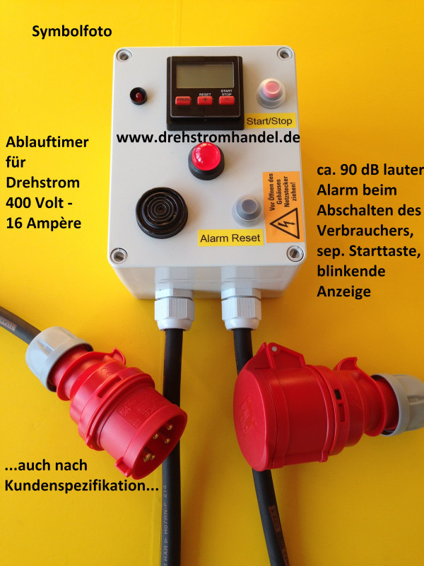 Drehstrom-Ablauftimer mit Sonderfunktionen, 400 Volt - 16 Ampère, lauter Alarm am Zeitende