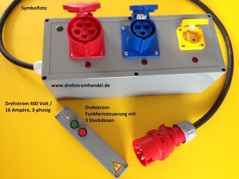 Drehstrom-Funkfernsteuerung, 400 / 16 Amp. - 3 Steckdosen zur Stromentnahme.