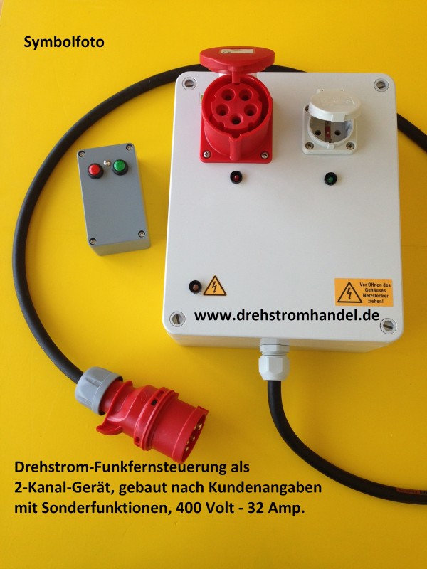 Drehstrom-Funkfernsteuerung mit CEE-Steckdose 400 Volt und Schukosteckdose 230 Volt - jeweils 32 Amp.