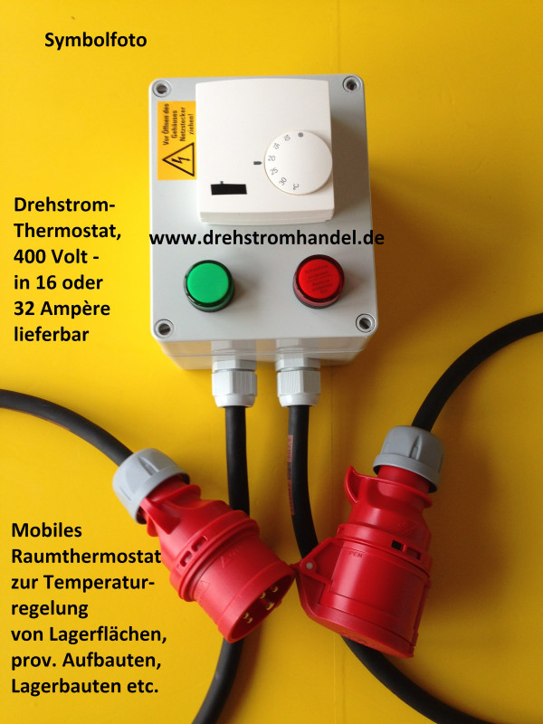 Drehstrom-Raumthermostat für mobile Anwendungen, Lagerzelte, prov. Aufbauten etc., 400 Volt / 16 Ampère