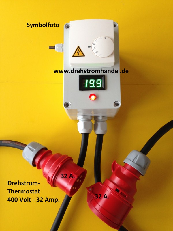 Drehstrom-Thermostat - Drehstrom-Temperaturregler, steckerfertig, 400 Volt / 32 Ampère, Thermostat für 3-phasigen Wechs