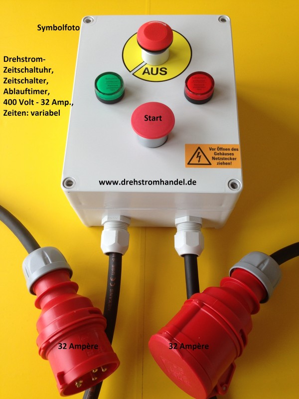 Zeiten: variabel einstellbar, separate Starttaste zum Auslösen des eingestellten Zeitintervalls, 400 Volt / 32 Ampère.