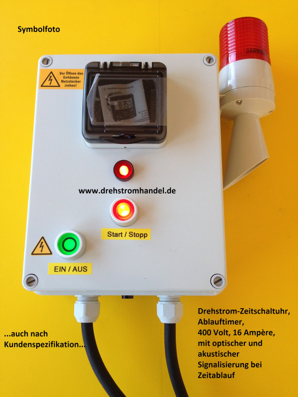 Drehstrom-Zeitschaltuhr, Ablauftimer mit opt. + akust. Signalisierung, 400 Volt / 16 Ampère