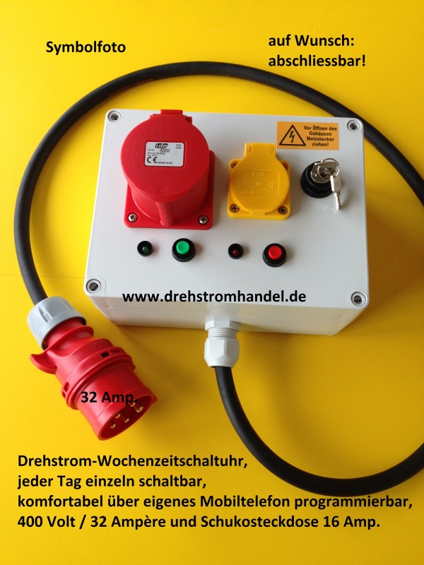 Drehstrom-Zeitschaltuhr, Wochenzeitschaltuhr zum Schalten von geeigneten Drehstrom-Verbrauchern.