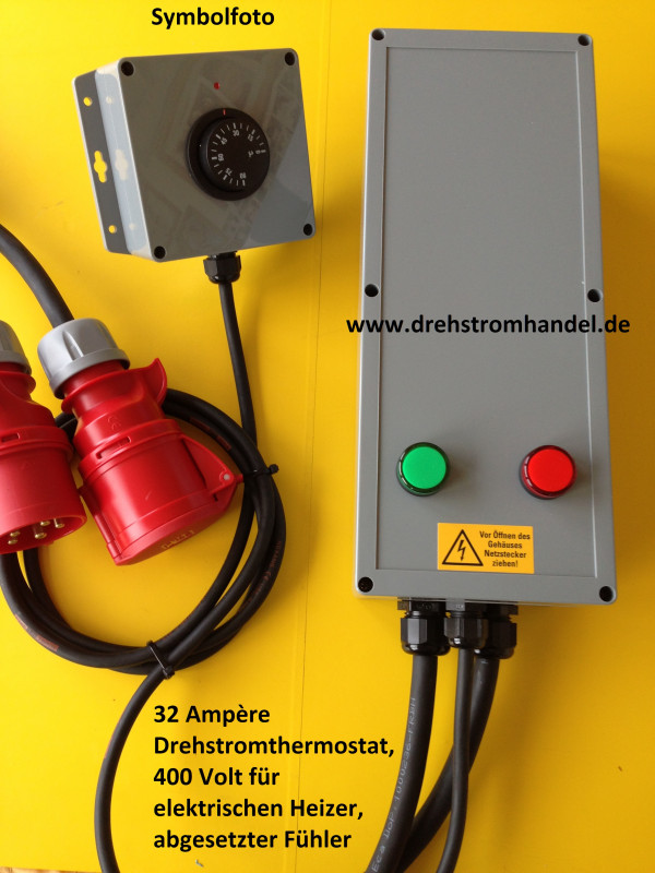 | Hersteller/Typ: | Drehstromthermostat Einstellmöglichkeit: 0 - 90 Grad Celsius, 400 Volt - 32 Amp. |