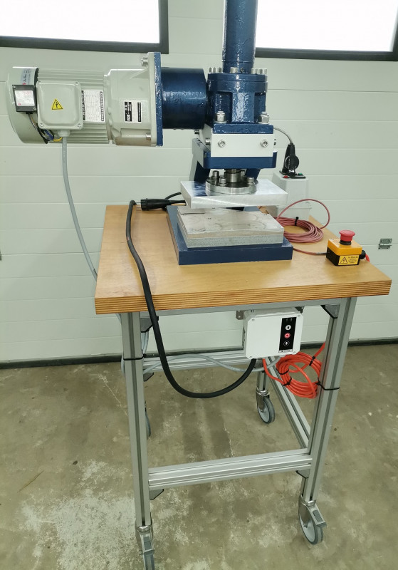 Die Labor-Heizpresse hat 40 kN Pressdruck (dynamische Last).