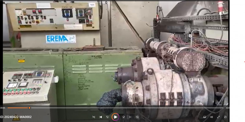 Komplette Granulierung Strecke mit Extruder Erema 160.Leistung 650-950 kg/h. Die Schnecke ist 6m Lang (2x3m). Zwei Filtrationssiebe von Trennkopf Gail TK 1000 und Granulierungskopf. Wasserringgranulierung Lstg 1000 kg/h.Funktionieret anwandfrei Viele Erstatzteile.