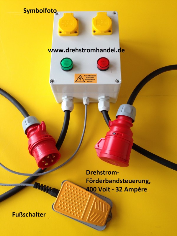 Förderbandsteuerung - Drehstrom / Kraftstrom 400 Volt - 32 Ampère mit Fußschalter (Tastbetrieb)
