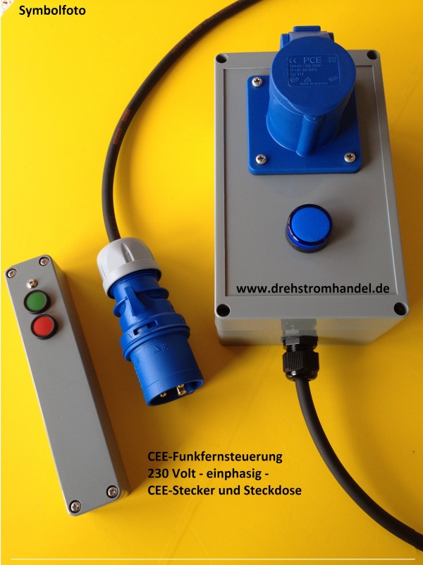 Funkfernsteuerung für 230 Volt / 16 Ampère (einphasig) komplett mit Gummischlauchleitung und CEE-Stecker,