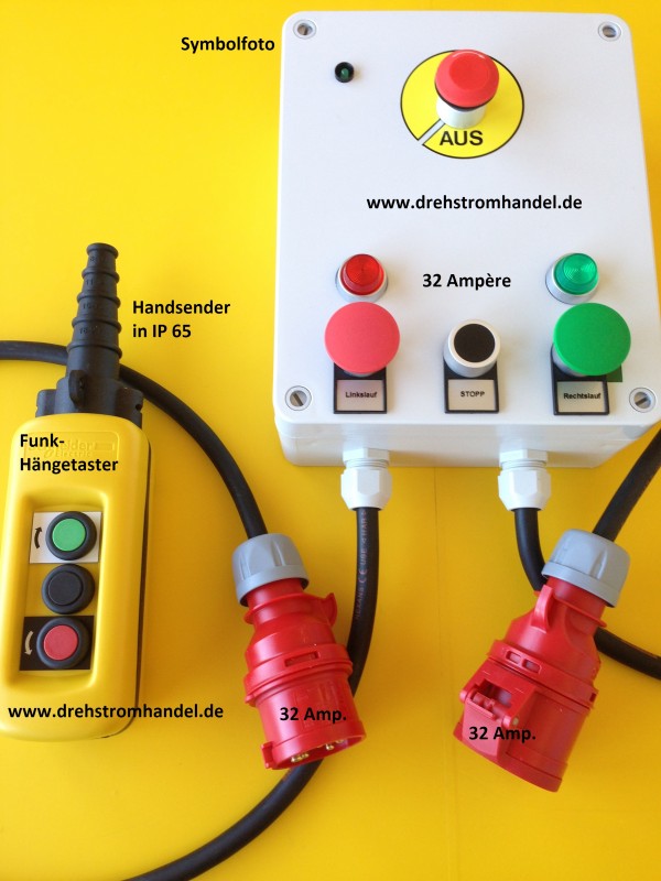 Funkfernsteuerung 400 Volt / 32 Ampère - Funkschalter mit Änderung der Drehrichtung per Funk und stationär, Funk-Hängeta