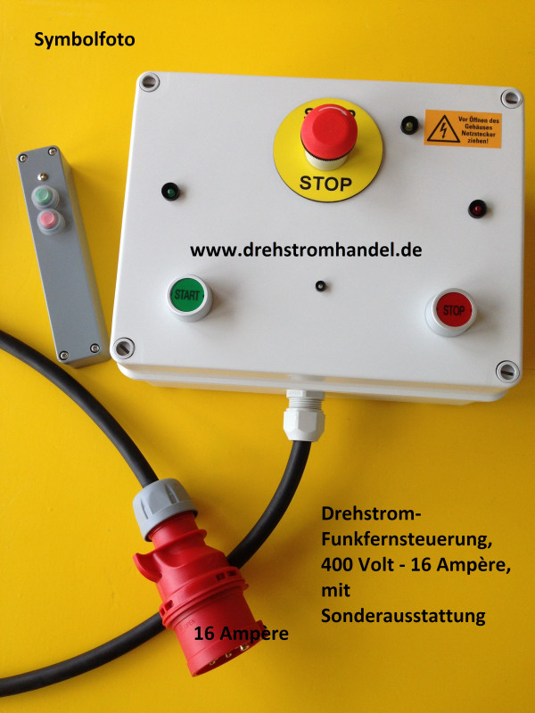 Funkfernsteuerung Drehstrom / Kraftstrom 400 Volt / 16 Ampère, Bedienung am Basisgerät oder per Funk!