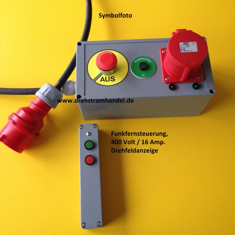 Funkfernsteuerung Drehstrom / Kraftstrom 400 Volt / 16 Ampère, Drehfeldrichtungsanzeige, zentraler Ausschalter