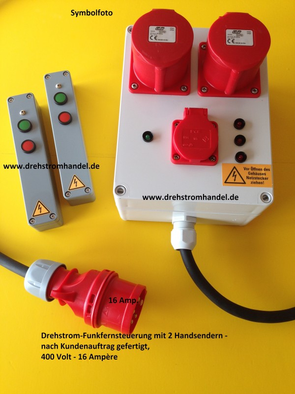 Funkfernsteuerung Drehstrom / Kraftstrom 400 Volt - 16 Ampère / 2 CEE-Steckdosen / 2 Handsender