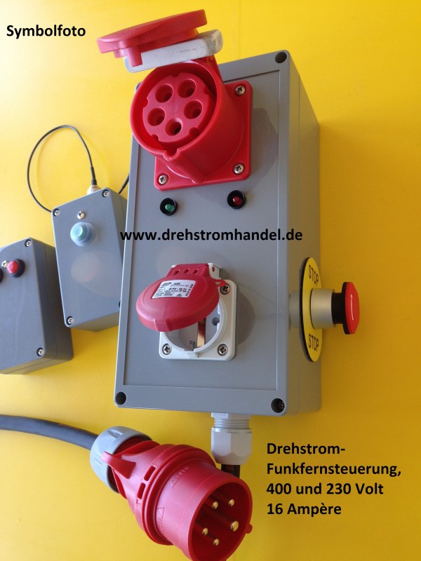 Für Drehstrom / Kraftstrom - zur Steuerung geeigneter Geräte, 400 Volt - 230 Volt / 16 Ampère, komplett mit Gummischlauchleitung und CEE-Stecker, geprüft und sofort einsatzbereit.