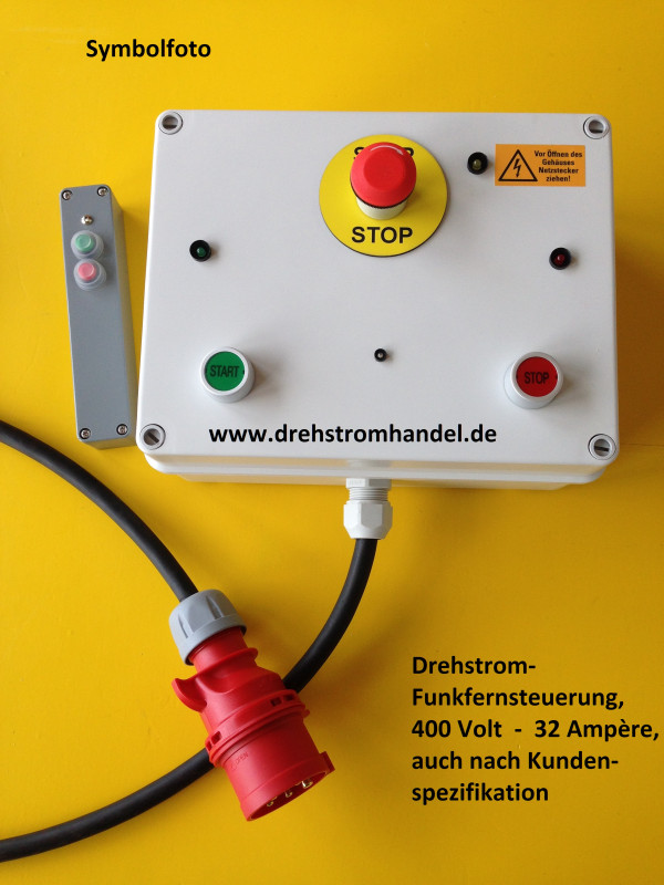 Funkfernsteuerung Drehstrom / Kraftstrom 400 Volt / 32 Ampère, Bedienung am Basisgerät oder per Funk!